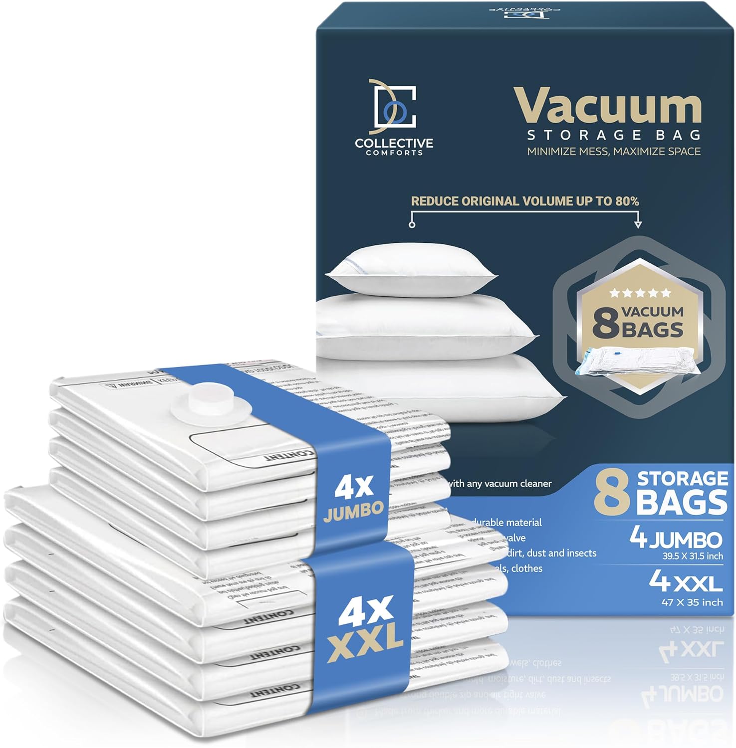 8 Pack Vacuum Storage Bags – 4 XXL & 4 Jumbo Vacuum Seal Bags for Blankets, Comforters, Clothing & Bedding – Space Saver Compression Bags