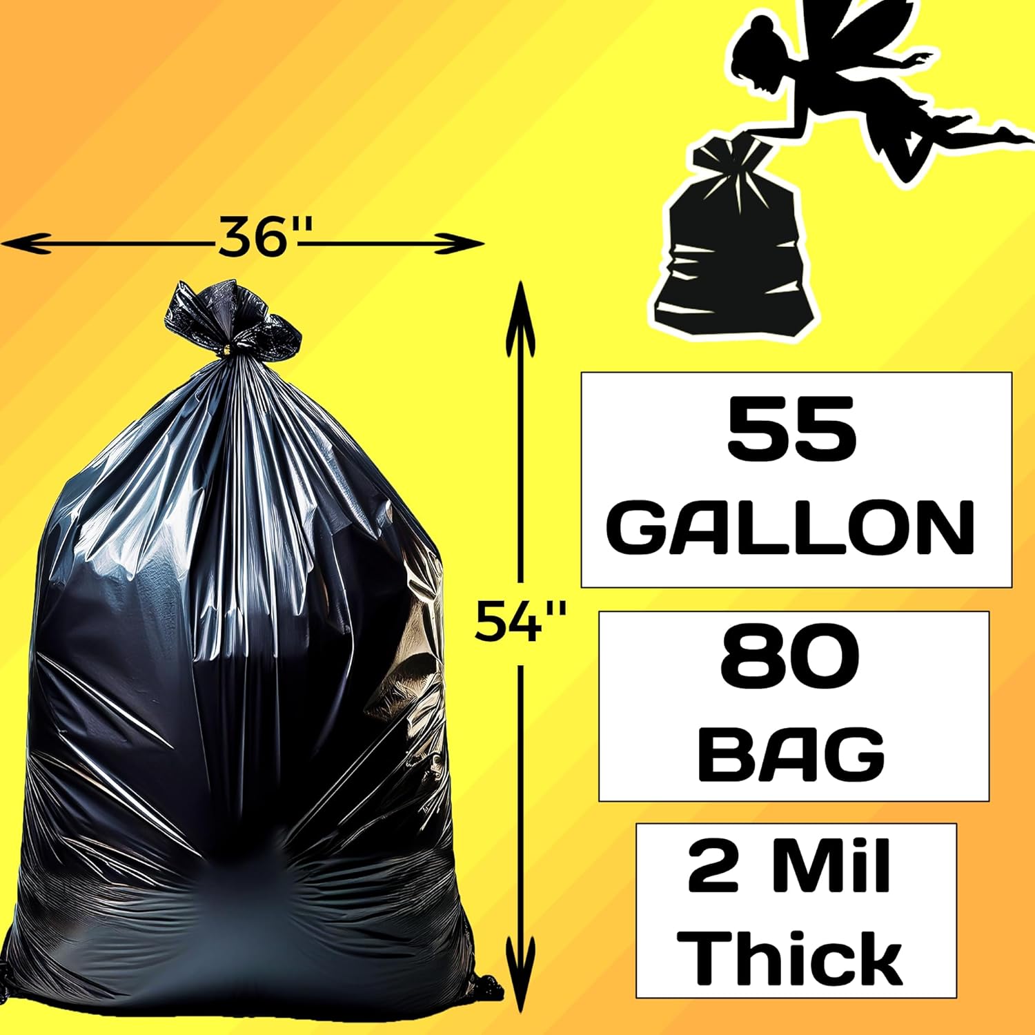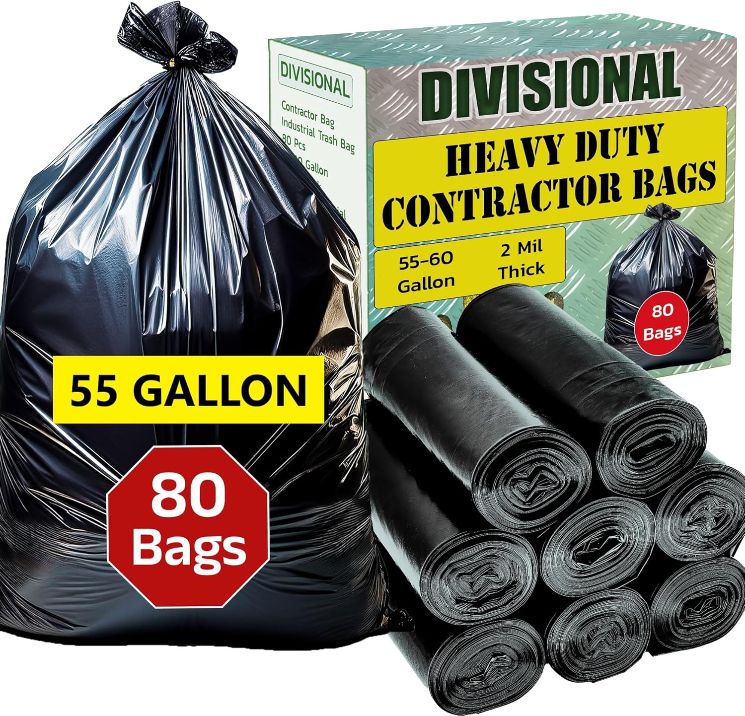 80 Count | Contractor Garbage Bags | 55 Gallon Contractor Bags Heavy Duty | 2 Mil | Heavy Duty Contractor Bags | Contractor Trash Bags | Heavy Duty Trash Bags