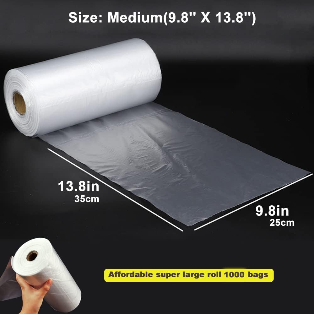 9.8 X 13.8 Inch Plastic Produce Bags Roll, 1000 Bags of 1 Big Roll for Fruits, Vegetable, Bread, Clear Kitchen Food Storage Bags (Medium)