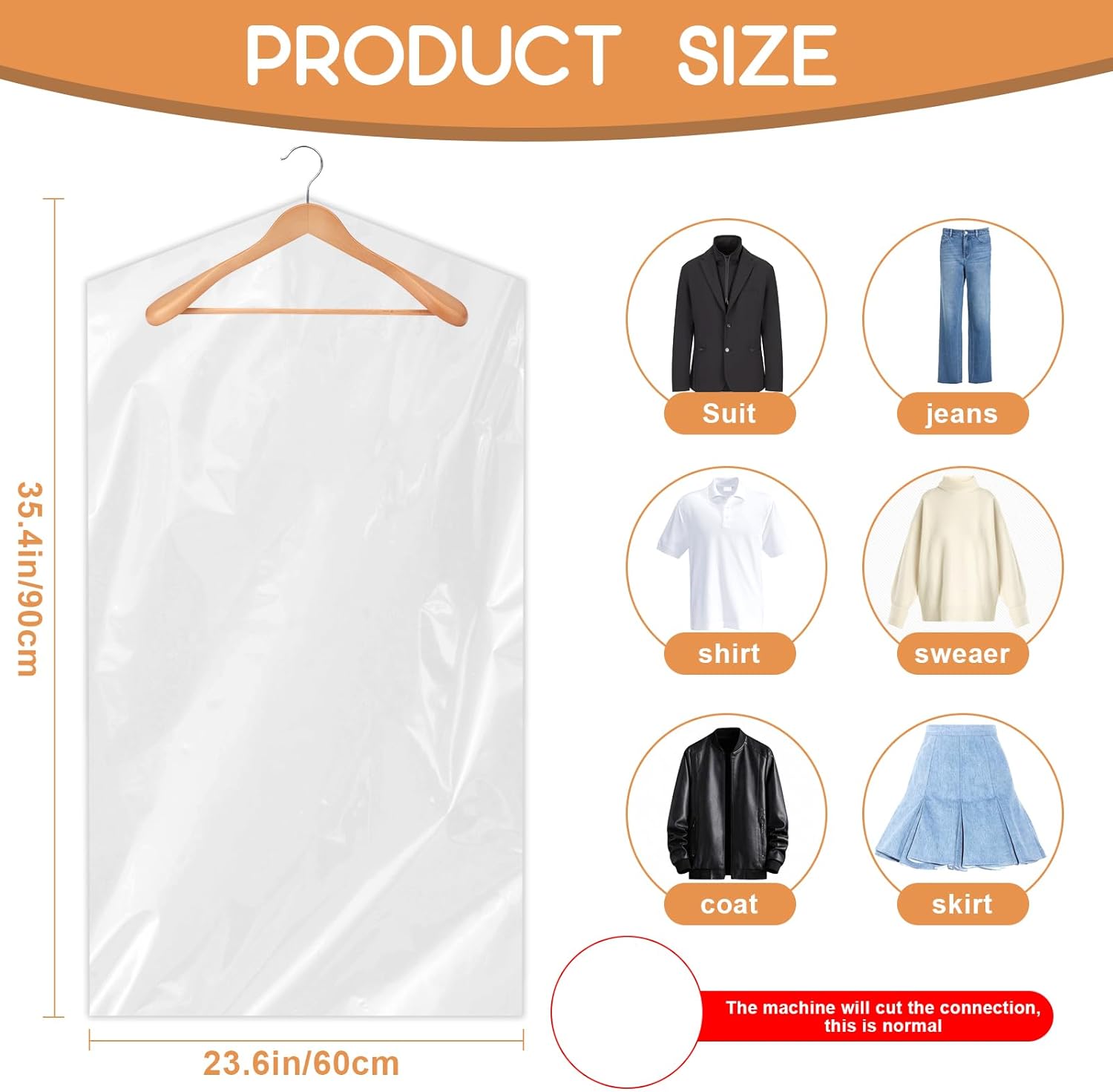 90 PCS Dry Cleaner Bags Plastic Clear 35.4 Inches,Garment Bags for Hanging Clothes Plastic Garment Bags Clear Clothes Covers Dry Cleaner Bags Hanging Dust-proof(60x90cm)