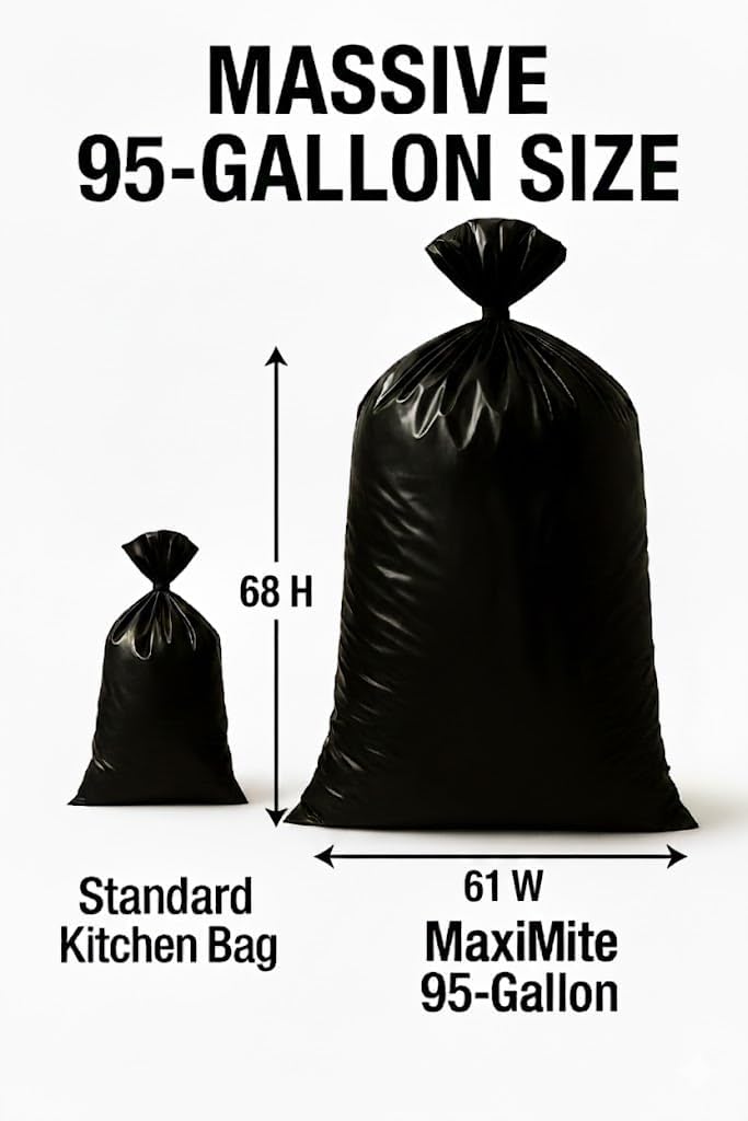 EXTRA-LARGE CAPACITY – Designed to fit 95-gallon to 100-gallon trash cans, these big black trash bags measure 61” W x 68” H, making them ideal for extra-large rollaway cans, outdoor garbage bins, and bulk waste disposal.