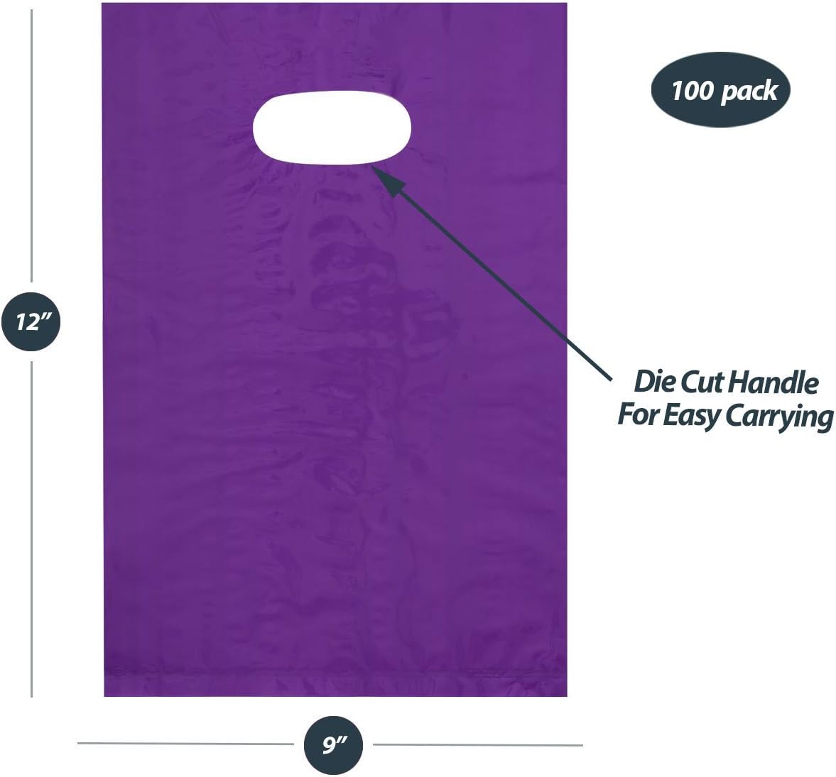 9×12 Purple Die Cut Handle Plastic Shopping Bags 100/cs