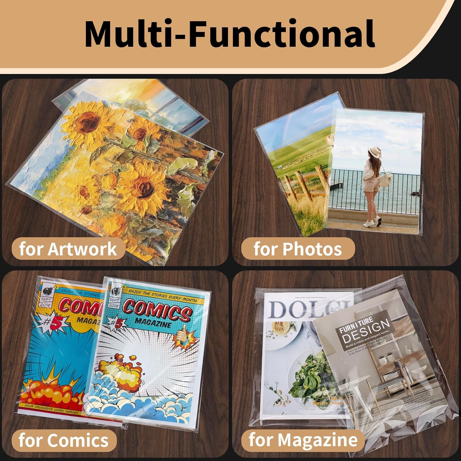 【Acid-Free and Sturdy】Svaldo thick clear plastic sleeves (1.57 mil per side) are crafted to protect your photos, documents, magazines, comic books, newspaper, paintings, poster, art mats, picture mats, and other important items from dust, moisture, and color fading for a long time. Please choose the right size to fit your collections.