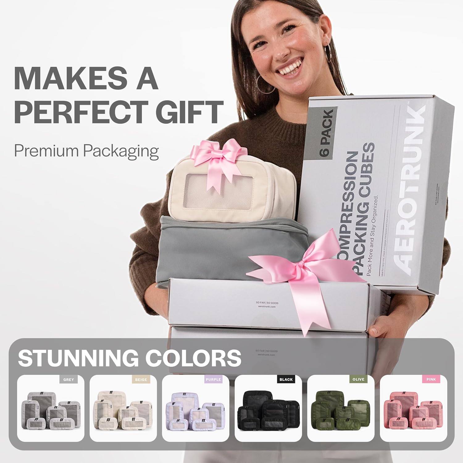 Aerotrunk Compression Packing Cubes for Travel – Luggage Organizer Bags – Double Zipper Packing Cubes for Suitcases (6-Pack, Beige)