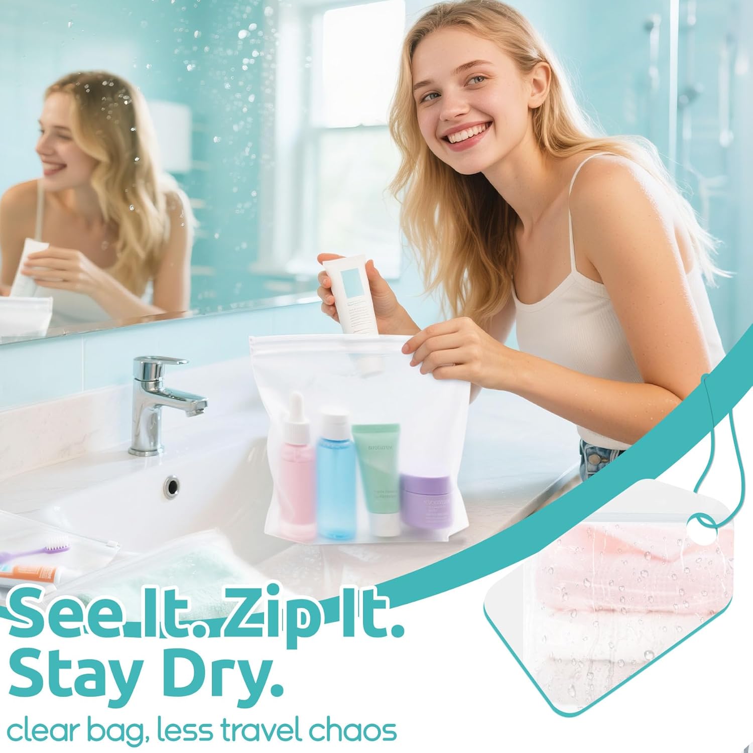 No Spills, No Mess: Skincare stays put, wet towels don’t touch your clothes. 3 clear waterproof bags make every morning and night on the road hassle-free