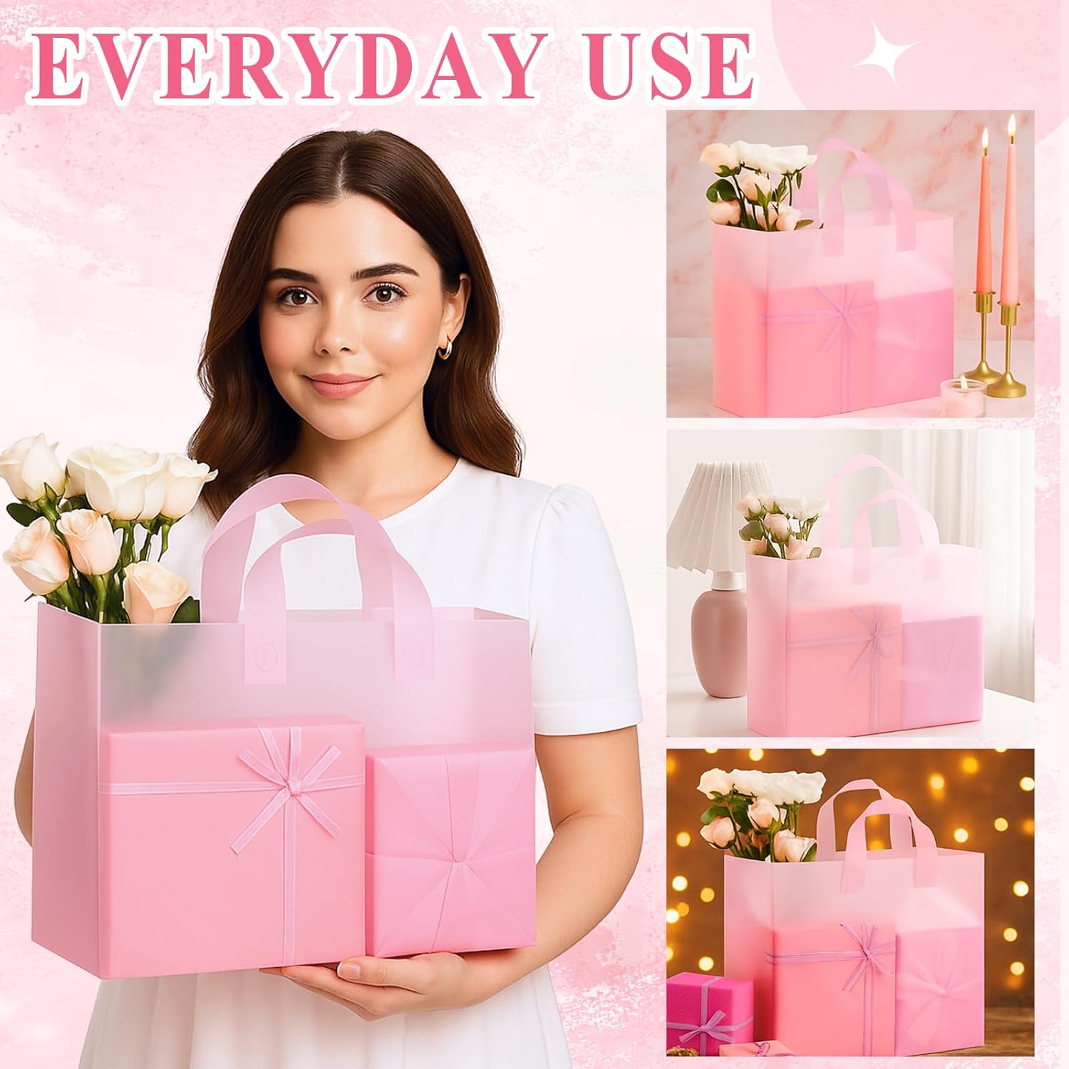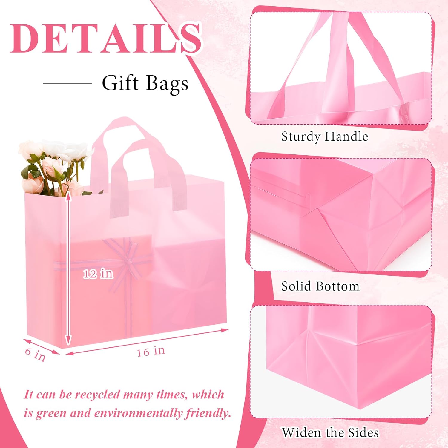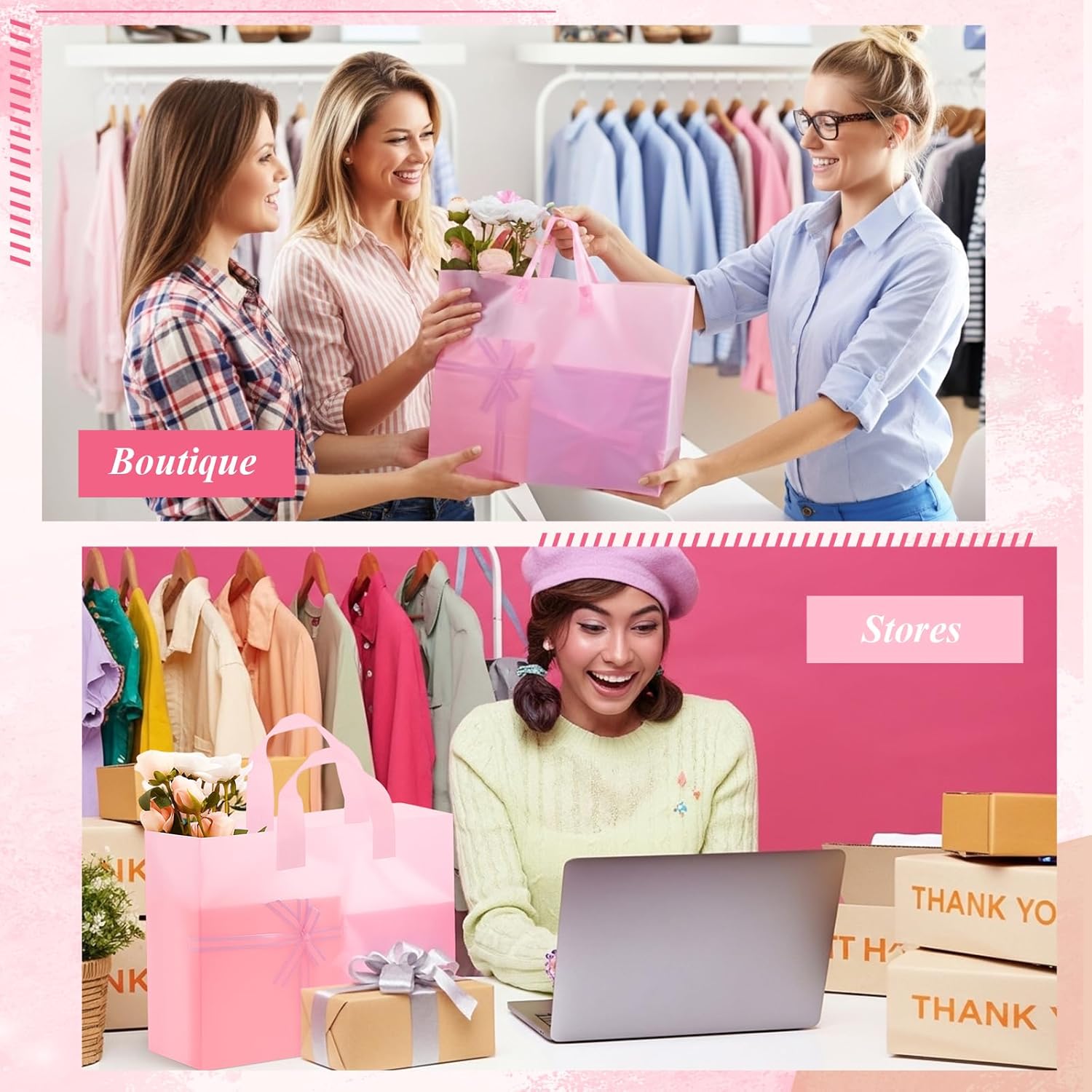 Amylove 100 Pcs Shopping Bags Bulk Large Plastic Gift Bags with Handles Pink Retail Bag Frosted Tote Bag for Small Business Boutique Wedding Holiday Gift Packaging 16″x 12″x 6″