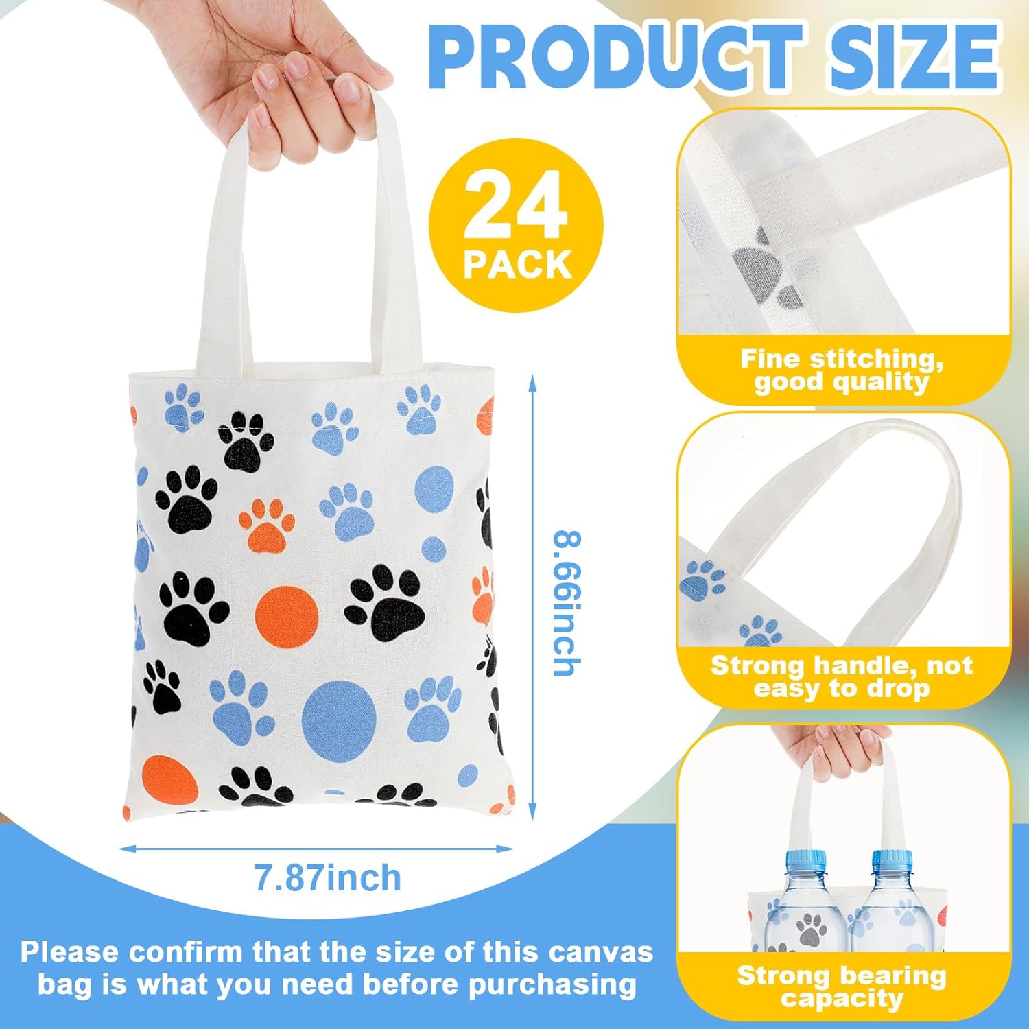Nice Essentials for PET Lovers: this set includes 24 mini paw print canvas bags, ideal for pet themed parties, wedding favors, veterinary clinic giveaways, Halloween candy bags, or small business retail packaging; Ditch single use plastic, reusable convenience