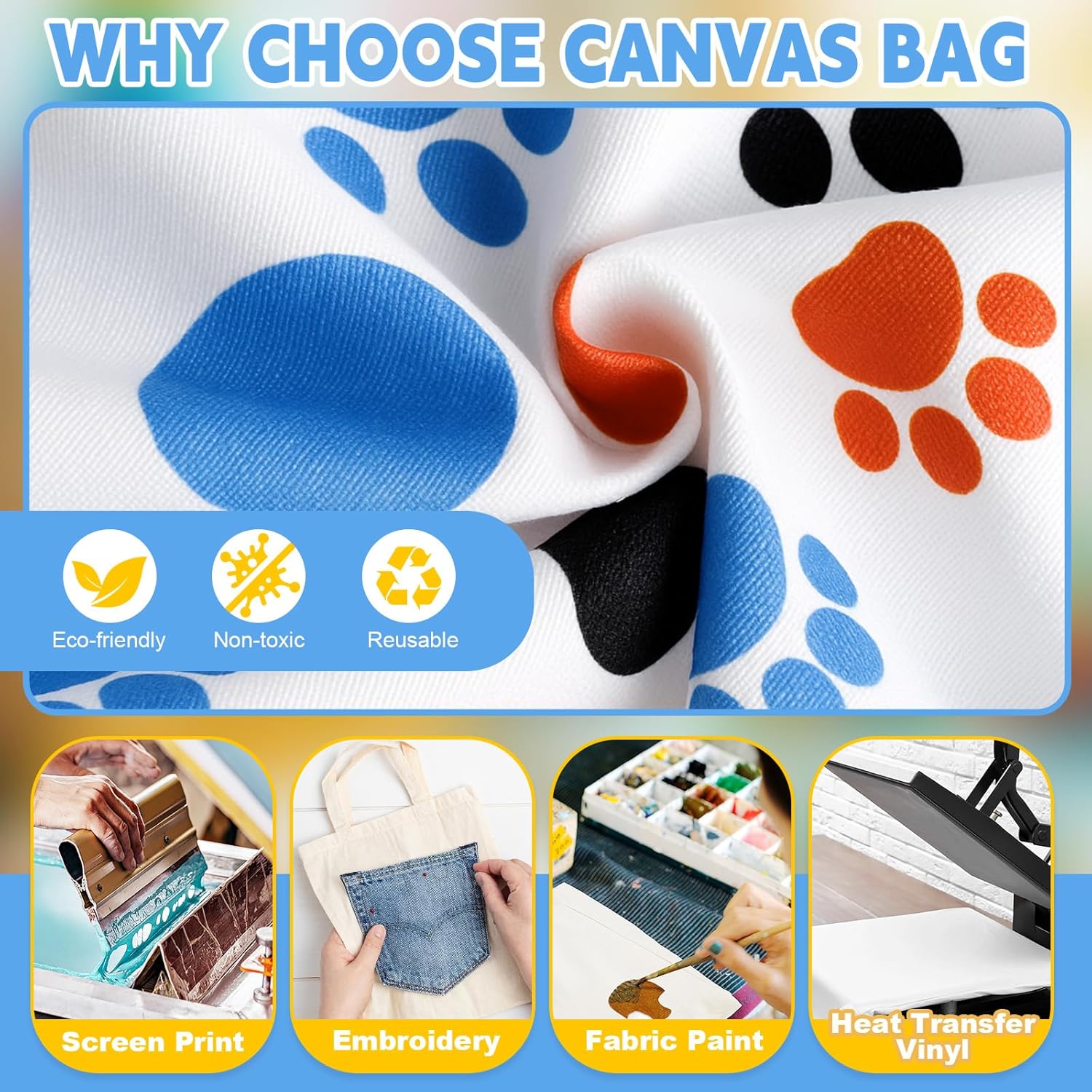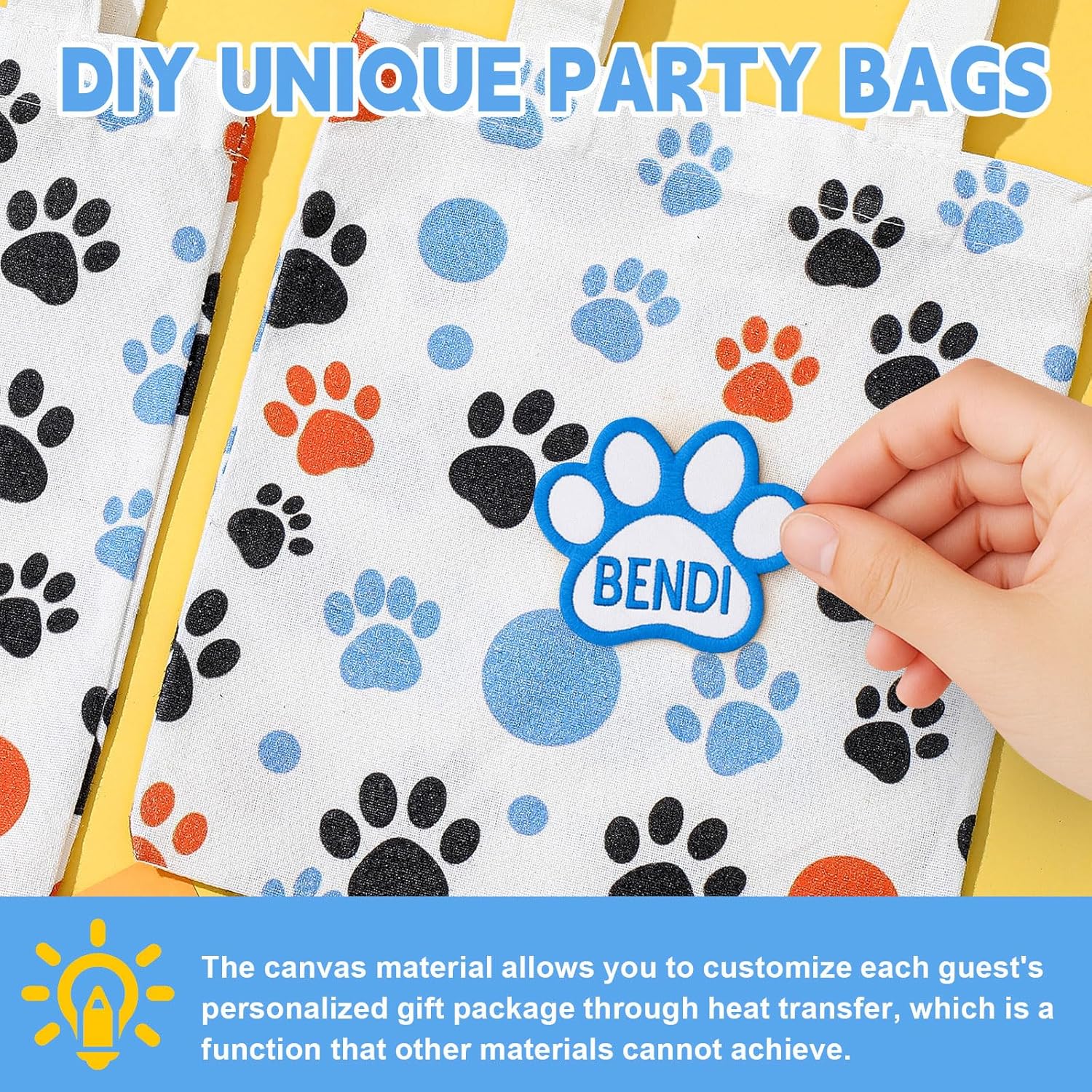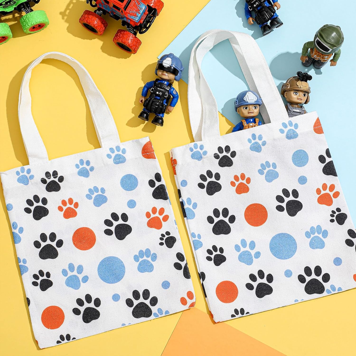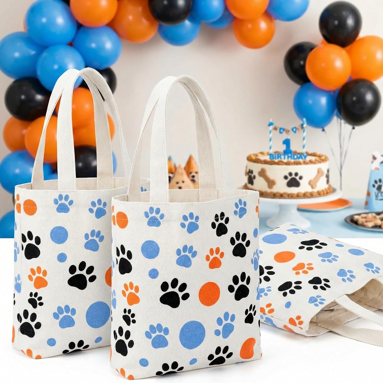 Adorable Paw Print Design for Pet LoversFeaturing a charming, trademark free paw print pattern in blue, orange, and black, these bags appeal to cat and dog lovers of all ages. The playful design makes them ideal gifts for pet owners or standout accessories for pet themed events