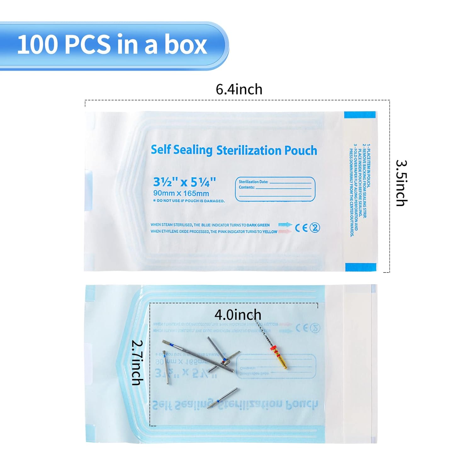 Note: Our self seal sterilization pouch can withstand up to 134°C/273.2°F, but cannot be used in DRY HEAT cleaning machine