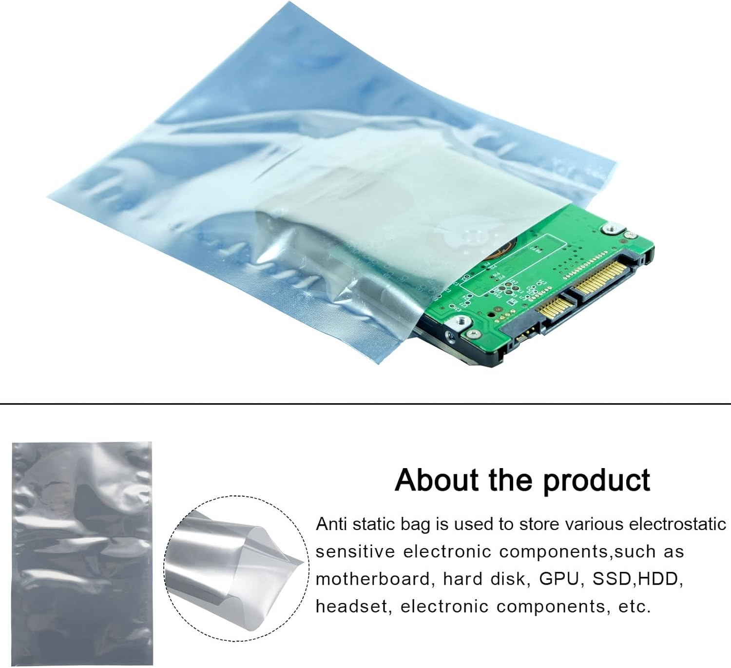 3-[Wide Application]: Anti static bag is used to store various electrostatic sensitive electronic components, such as motherboard, hard disk, GPU, SSD, HDD, headset, electronic components, etc.