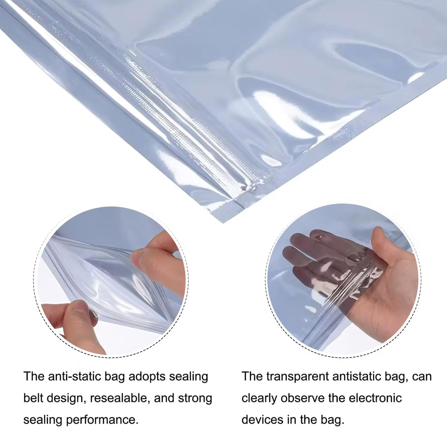 Convenient Design: Each anti-static bag is semi-transparent silver-gray, allowing you to clearly see the items inside without needing to attach labels on the outside. The resealable anti-static bag has a zipper seal to prevent the items inside from being exposed to moisture or static electricity from the body.