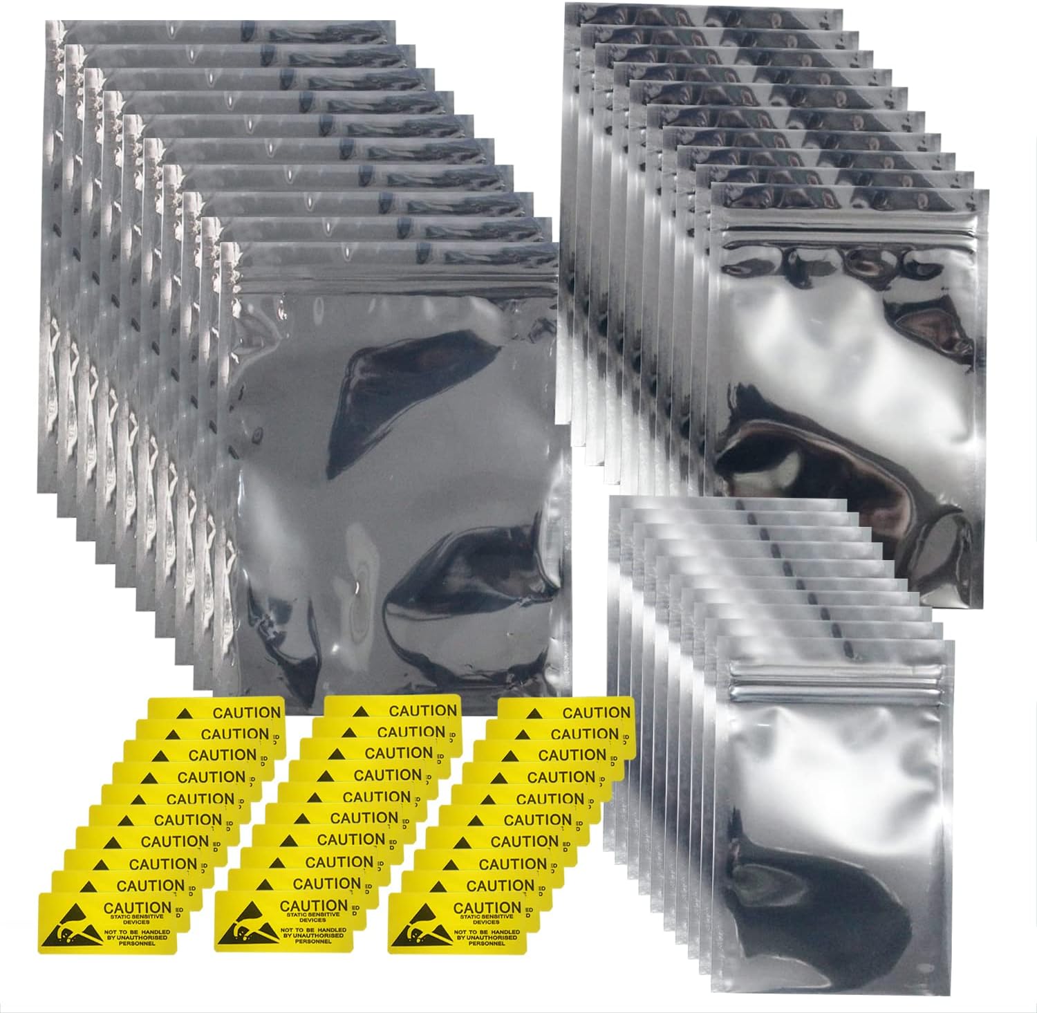 ★Package Includes: Comes with 3 sizes of resealable anti-static bags: 3.15” x 4.72” (8cm x 12cm), 4” x 6” (10cm x 15cm) and 6” x 8” (15cm x 20cm) Each set comes with 10 pieces of each size of resealable anti-static bags and 30 anti static labels.
