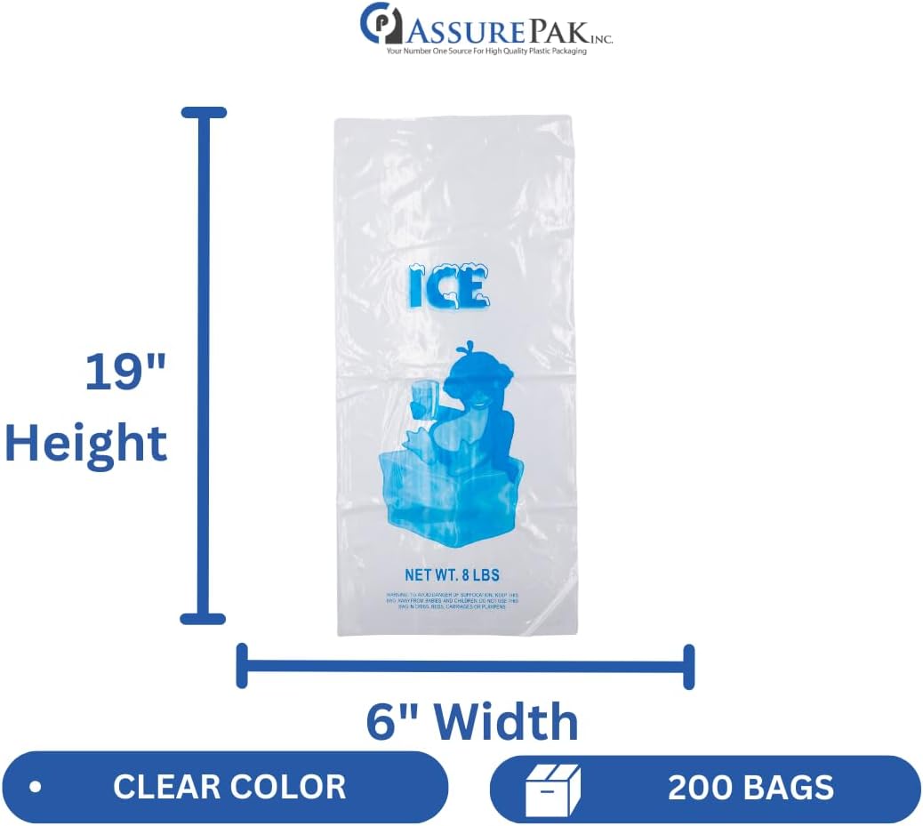 ASSUREPAK Clear LDPE Ice Bags 6″x19″ – 200 Bags (1.25 mil) – Strong Design for Ice Storage, Commercial Ice Machines, Freezer Use, Bag of Ice, Restaurant Supply, Plastic for Frozen Water Packing