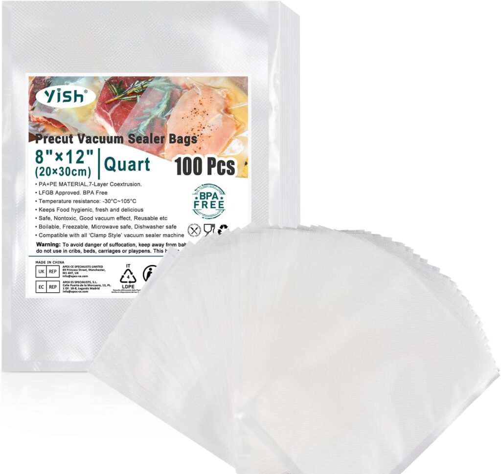 Pack of 100 Food Sealer Bags – We’ve got you covered with our pack of 100 pre-cut vacuum food storage bags. Place your leftovers, marinades, prime cuts, and more with still a lot of pieces left to spare.
