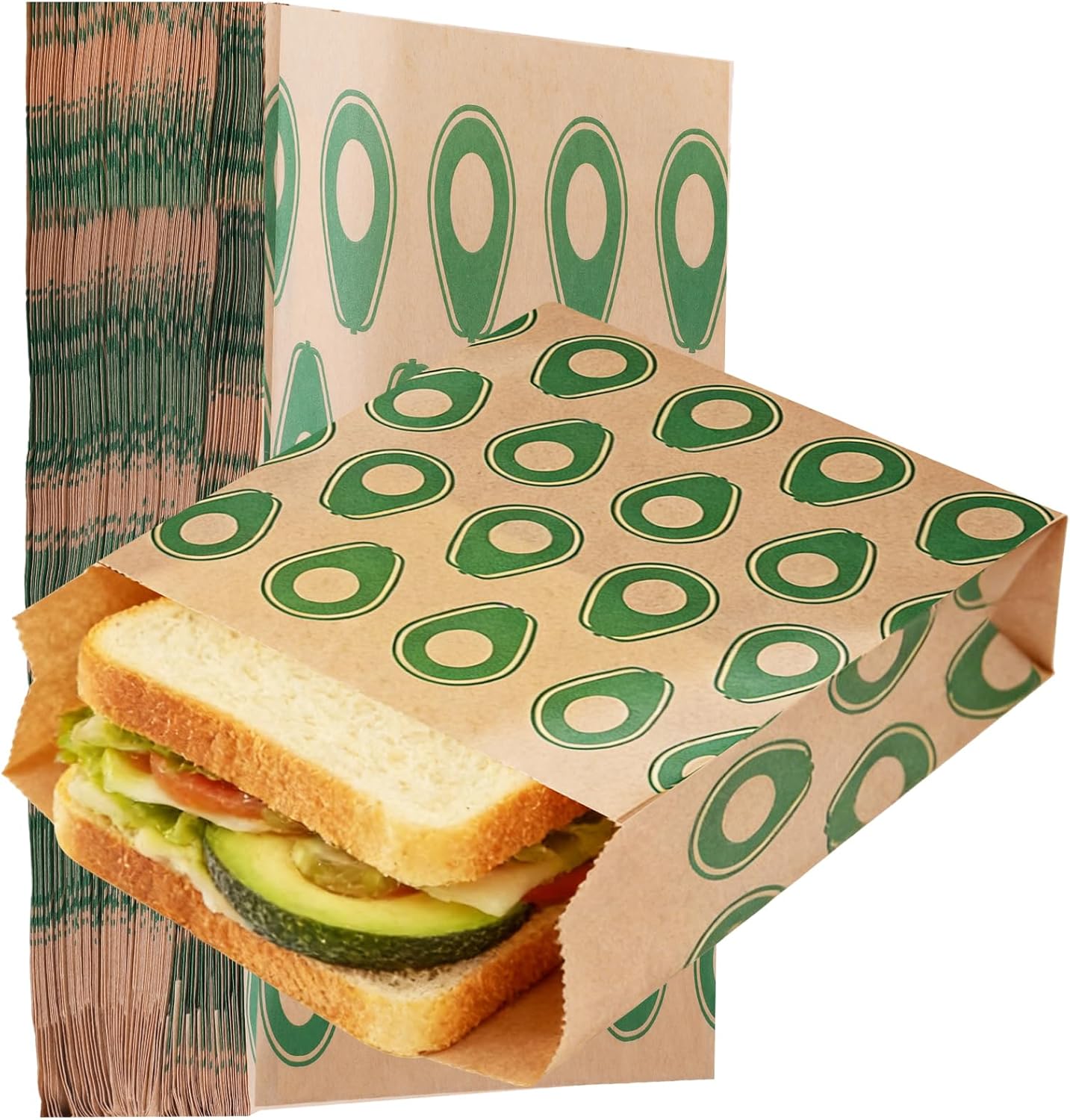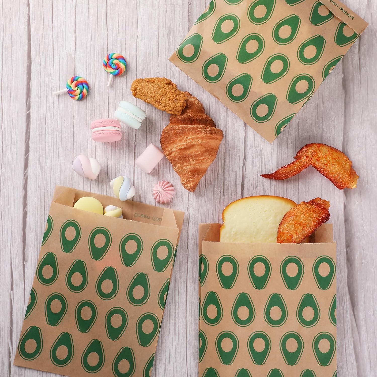 Avocado Paper Sandwich Bags 50 Count, Grease-Resistant Kraft Snack Bags, Pastry Bags for Cookies Treats, Bread, Fries, Muffins (6.3×7.28 Inch)