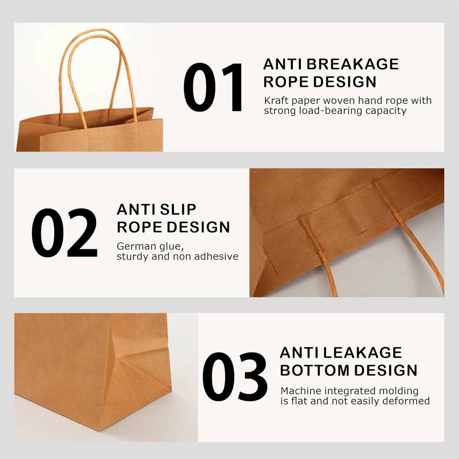 【Versatile Use】These gift bags are not just for parties; use them as paper bags for small business needs, or as brown paper bags for retail shopping. Their strong handles make them reliable shopping bags, ensuring both style and utility