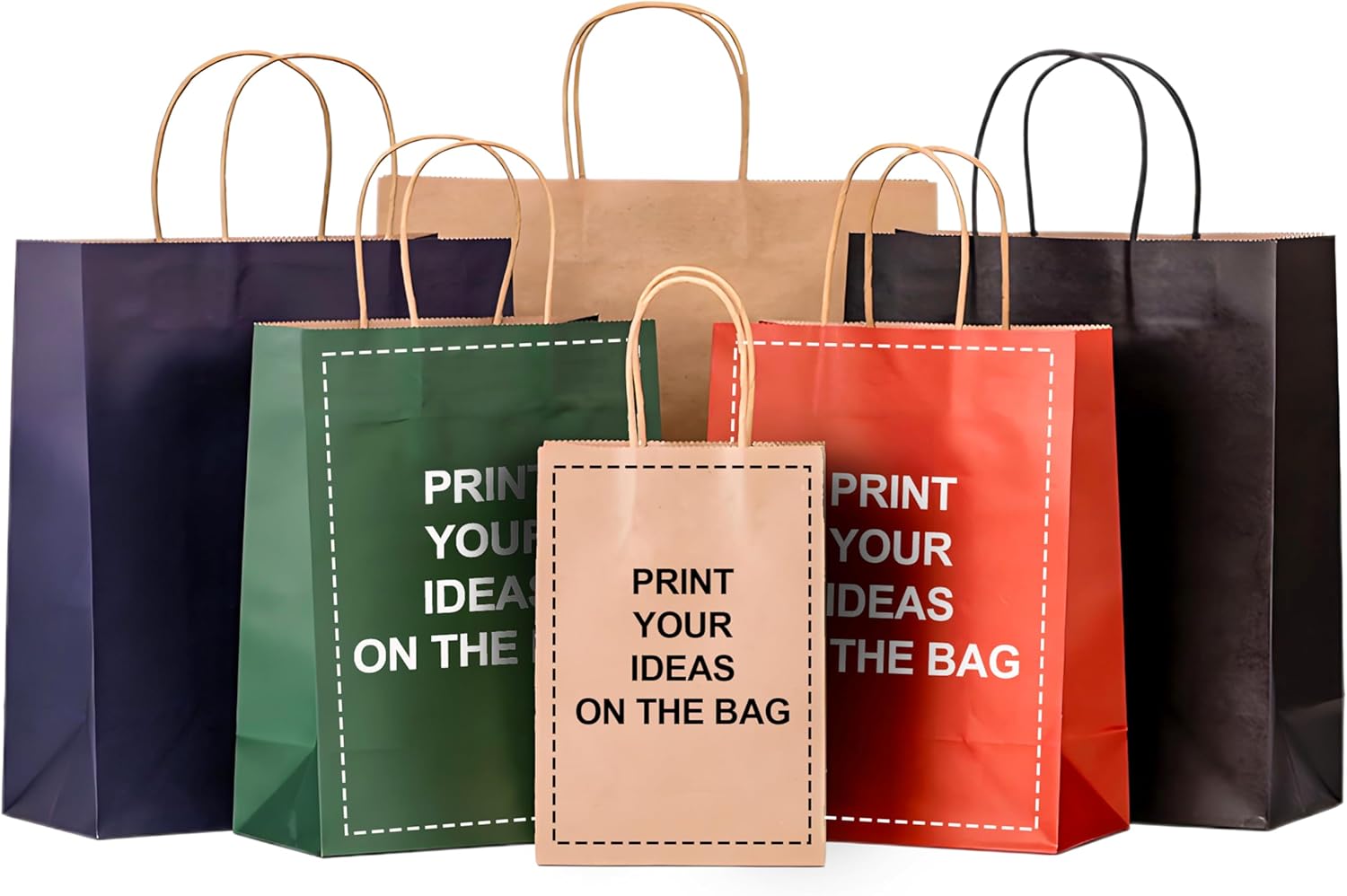 Azulavina Custom Bags with Logo 10/30/50/100 Pack – Paper Bags for Small Business Shopping – Custom Gift Bags with Name – Gift Bags Bulk