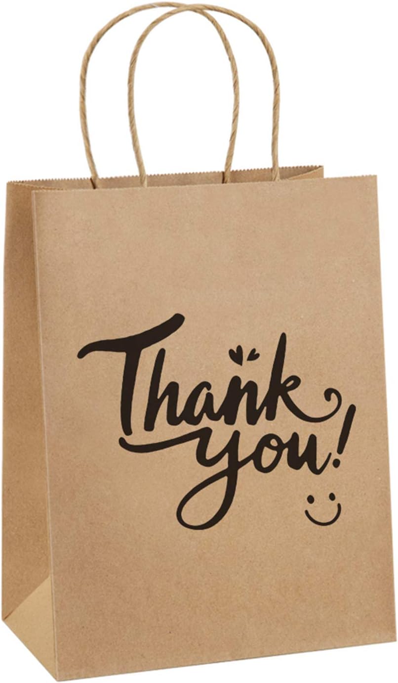 BagDream 8×4.25×10.5″ Brown Thank You Gift Bags (Medium)