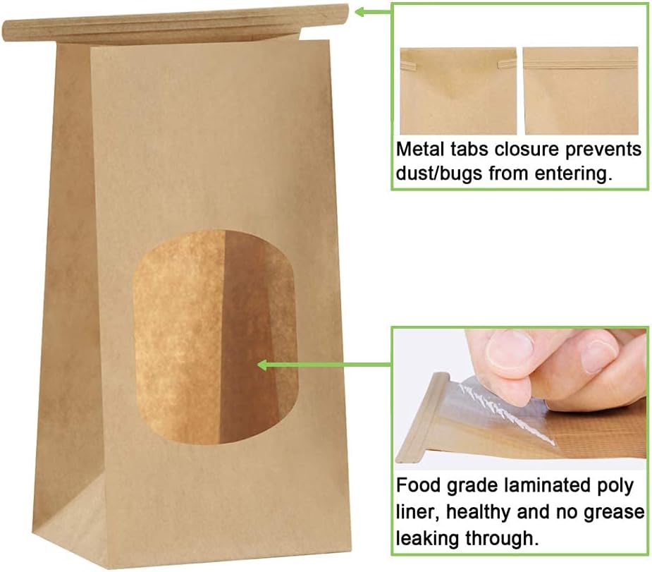 BagDream Small Bakery Bags with Window 50Pcs 3.54×2.36×6.7 Inches Window Tin Tie Tab Lock Kraft Brown Paper Bags for Coffee Bean, Cookies, Treat, Snack