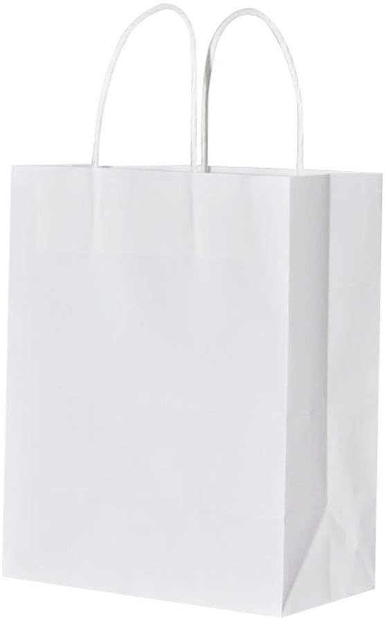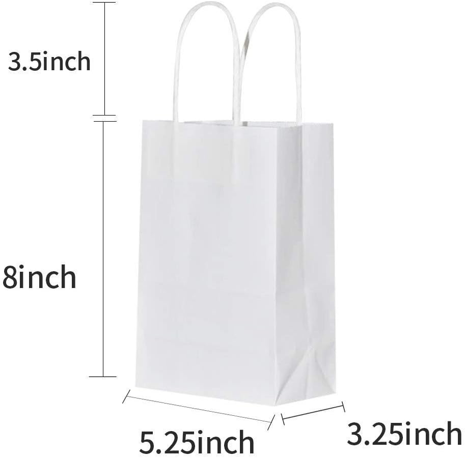 bagmad 100 Pack Sturdy Small White Kraft Paper Bags with Handles Bulk, Gift Bags 5.25×3.25×8 Inch, Craft Grocery Shopping Retail Party Favors Wedding Business Sacks (White, 100pcs)