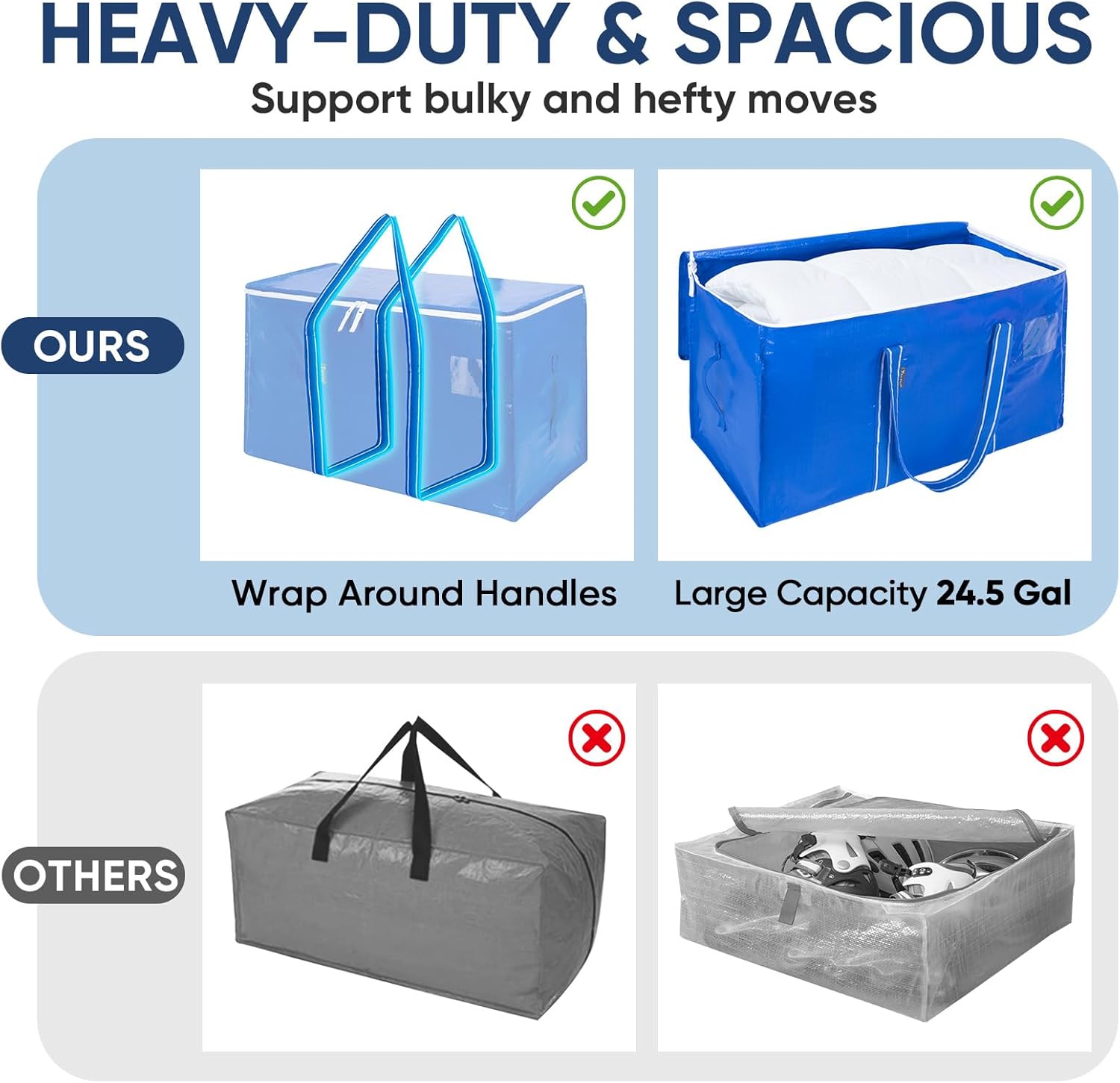 [✔️ WIDE APPLICATIONS] The moving bag is an alternative for moving box and organizer. The packing bags are Water-resistant, durable and foldable. Great for storage, space saving, camping, holiday packing, Christmas storage and so on