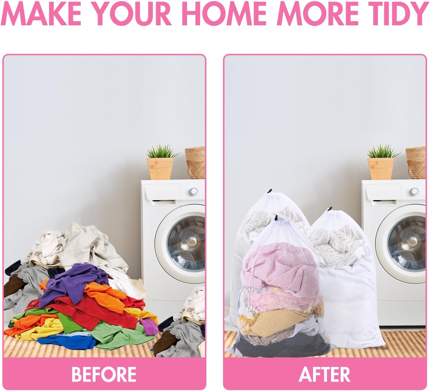 24 X 36 Inch Large Capacity: Each mesh laundry bag fits comforters, blankets, towels, bedding, pillows, and bulky garments. Ideal for handling large loads without overfilling or fabric damage