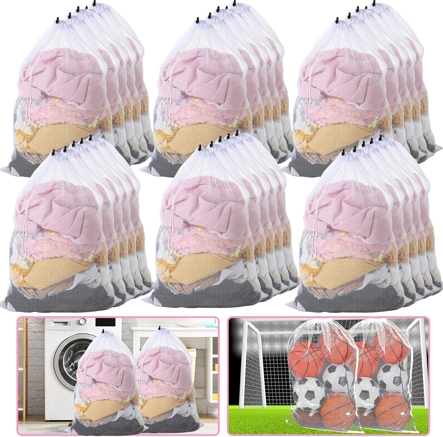 Berlune 30 Pack Large Mesh Laundry Bags, 24 x 36 Inch Bulk Wash Set with Drawstring for Commercial Use, Dorms, Vacation Rentals, Laundromats, Apartments & Facilities(White)
