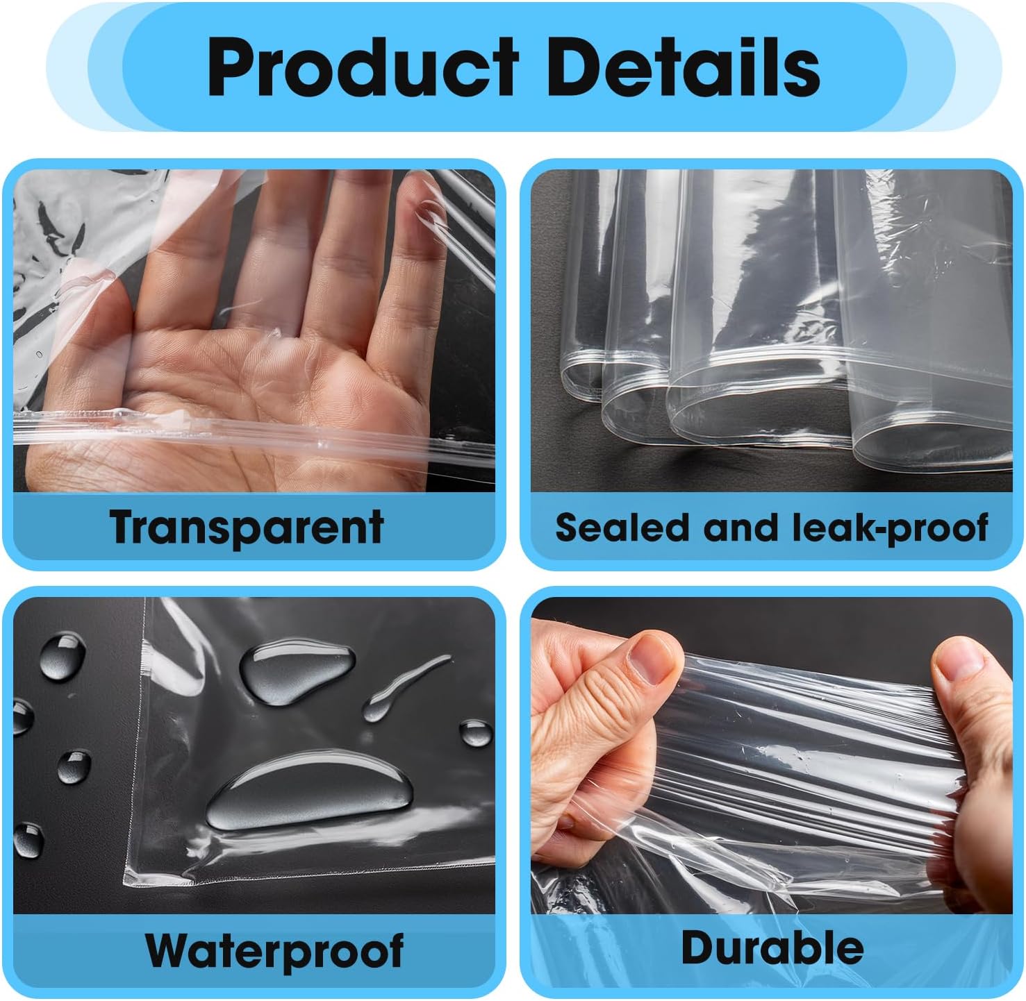 Tear-Resistant Material: These large clear plastic bags are made with thick and durable PE material, which has excellent resistance to wear and tear. The plastic storage bags are very strong and puncture-resistant, built to last for multiple uses.