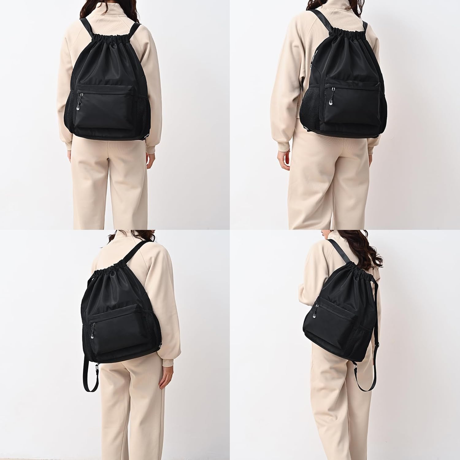 Two side pockets: The LOKAPEGY drawstring backpack has two side pockets, which can hold a water bottle and an umbrella separately.
