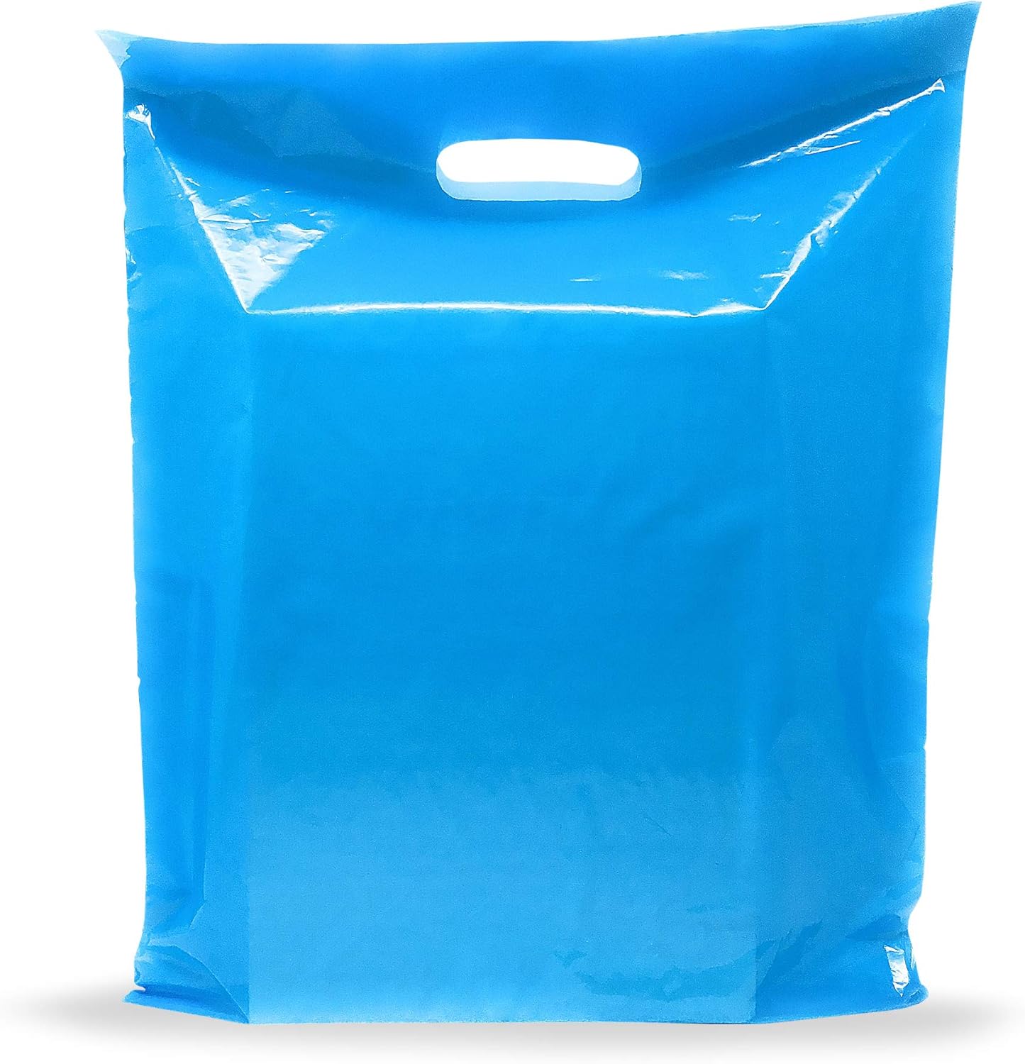 Pack of 100 Blue Glossy Bags Die Cut Handles, Measures: 12″ x 15″ by 1.5 Thickness