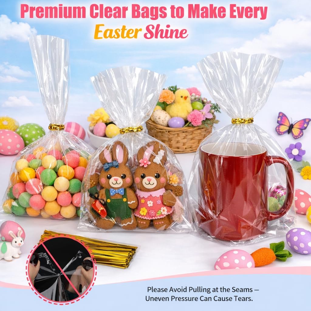 Clear Cellophane Treat Bags with Twist Ties – 100 Pcs for Candy, Gifts & More