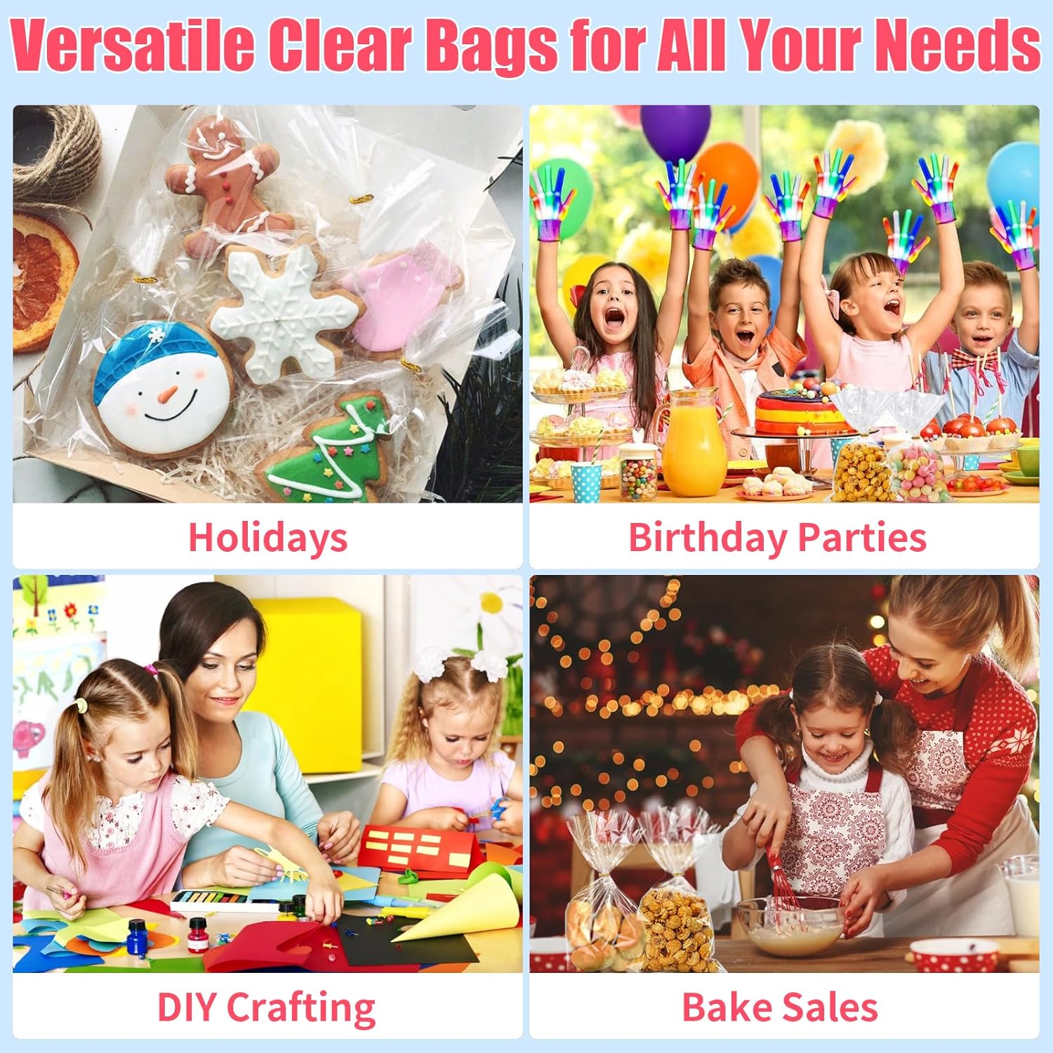 6″×10″ Flat Clear Treat Bags for Everyday Gifting – The go-to size for cookies, candy, popcorn, chocolate, snack mix, small favors and handmade goodies. Flat bags store neatly and are easy to pack for school events and parties.