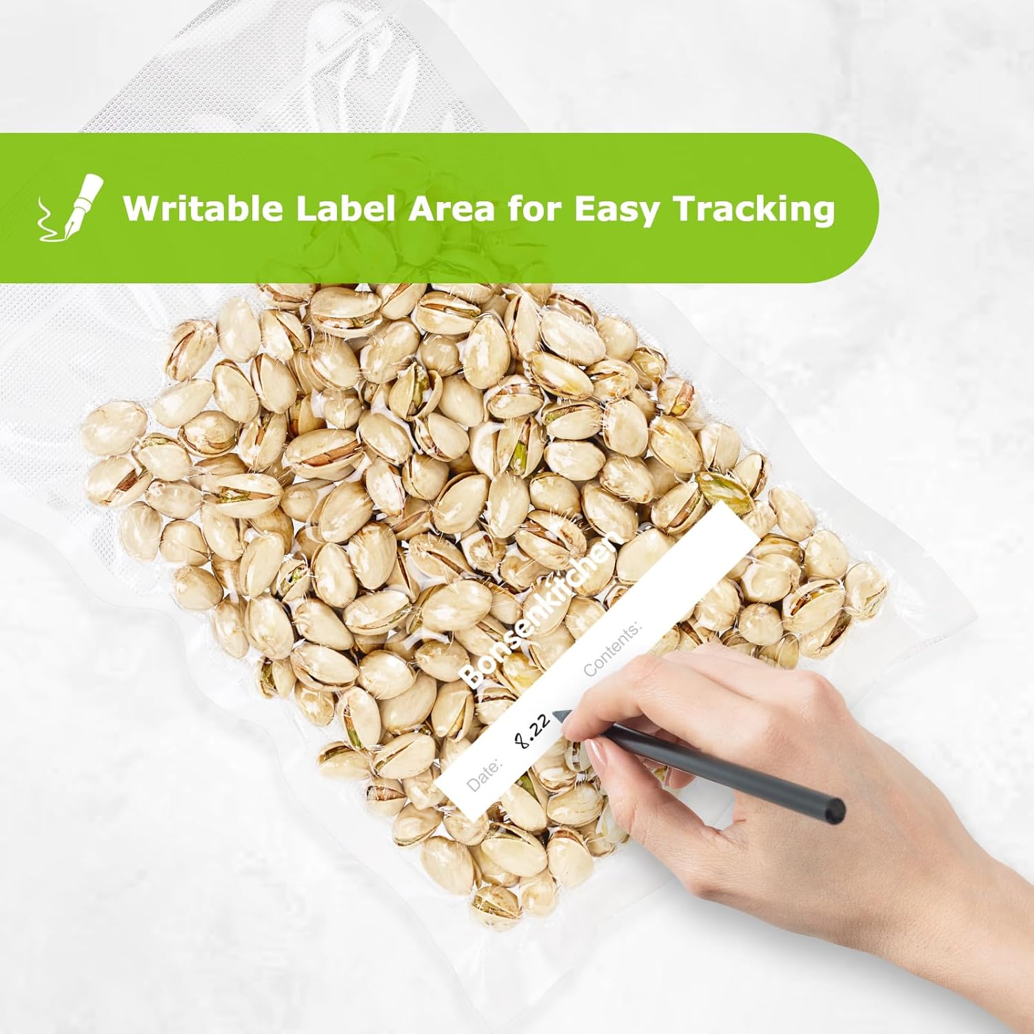【COMMERCIAL GRADE VACUUM SEALING BAGS】BonsenKitchen vacuum sealing bags have deeper air passages than other brands for a better seal, keeping food moisture and forming an airtight barrier,keeping food fresh without freezer burn or dehydration