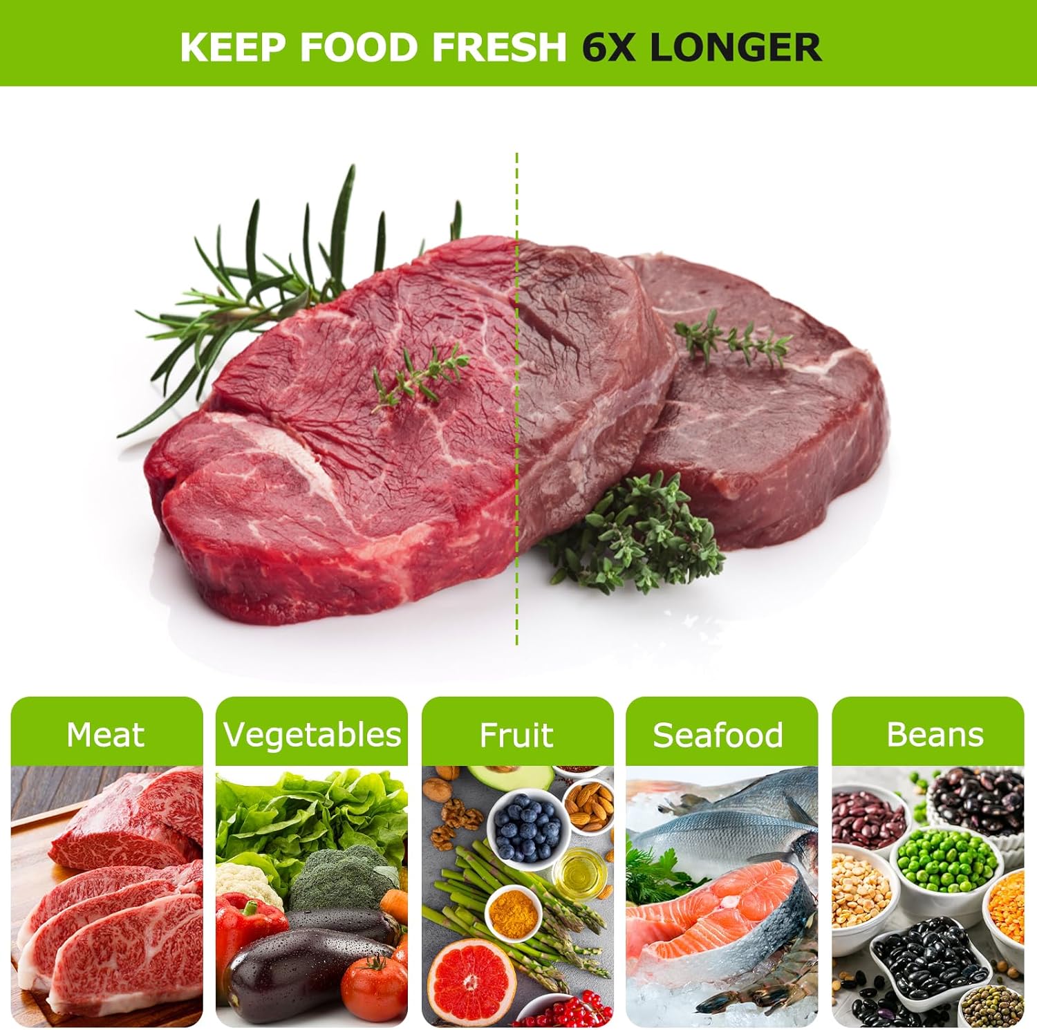 LONG TIME PRESERVATION:Vacuum bags have deeper air passages than other brands for a better seal, keeping food moisture and forming an airtight barrier, keeping food 6 times fresh without freezer burn or dehydration