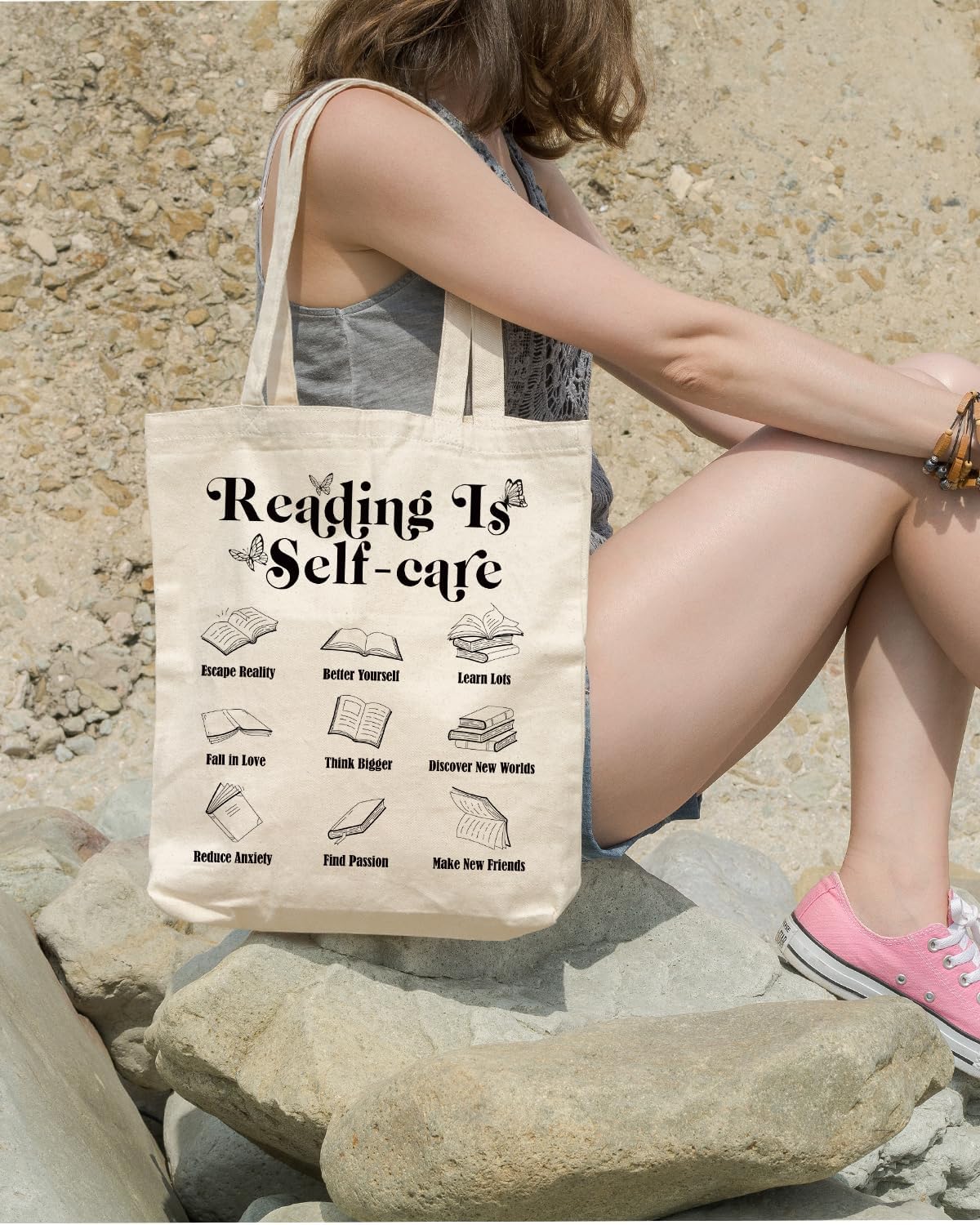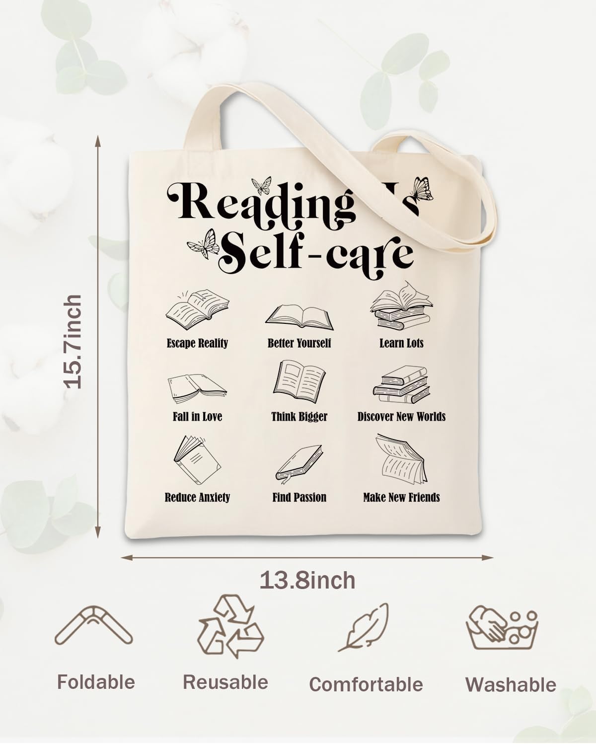 Book Lovers Tote Bag, Grocery Reusable Tote Bag for Reading Accessories, Librarian, Readers, Teacher, Library Present
