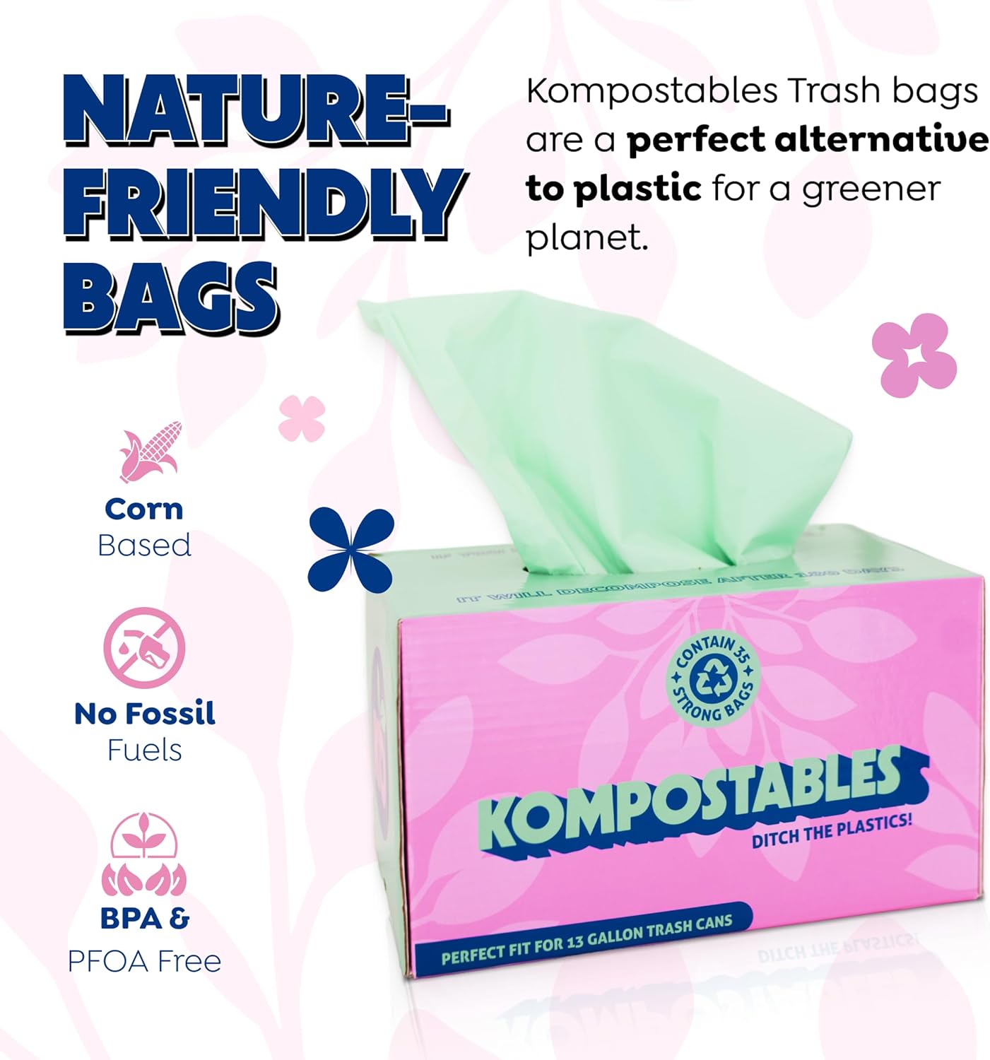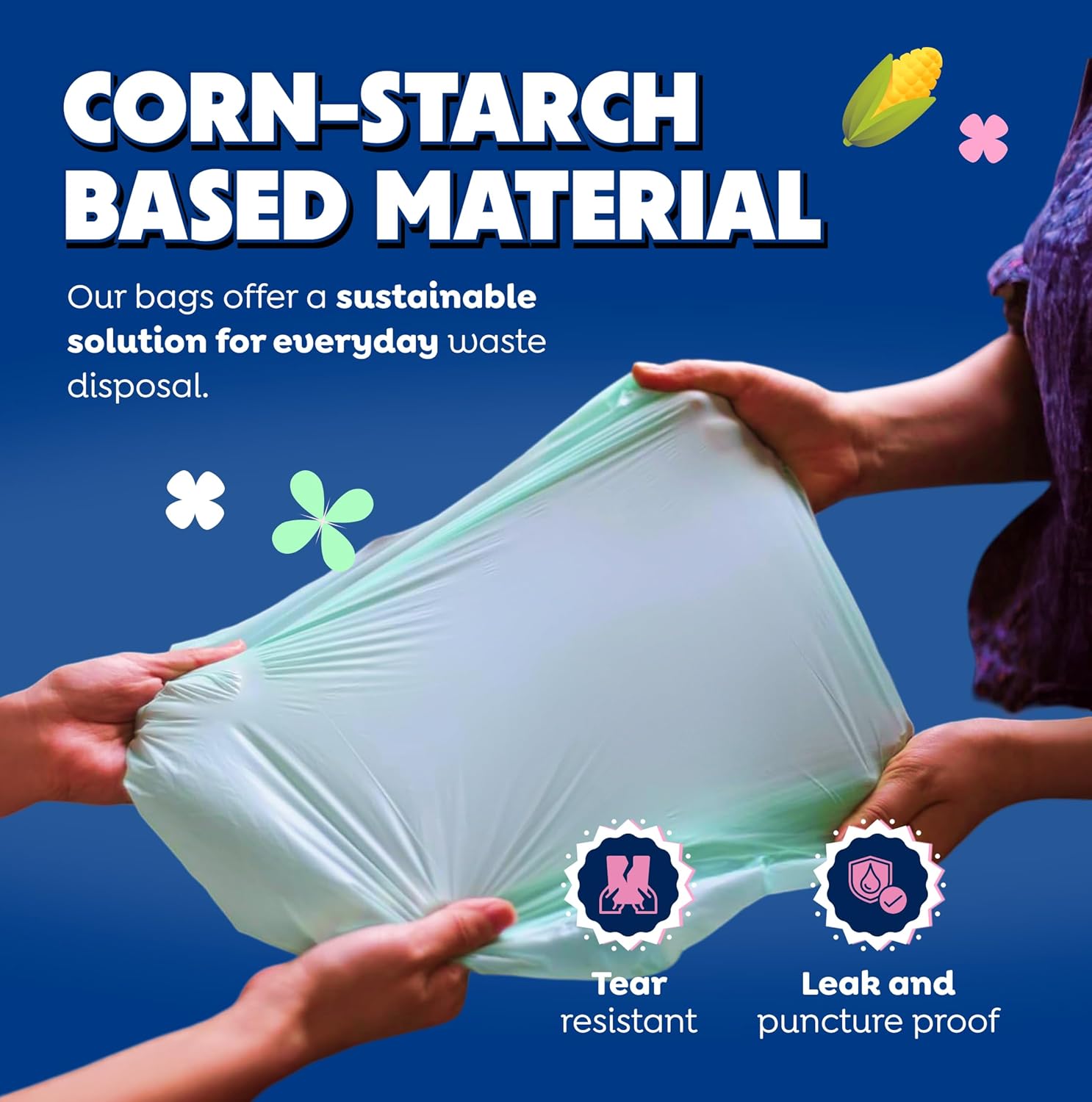 Made from Renewable Corn: Made from PBAT+PLA (that’s fancy talk for cornstarch polymers), our tall kitchen plant based trash bags 13 gallon avoid adding harmful plastic waste to the environment and reduces support for its manufacture. Help us promote the adoption and normalization of renewable resources as sustainable alternatives to plastic.