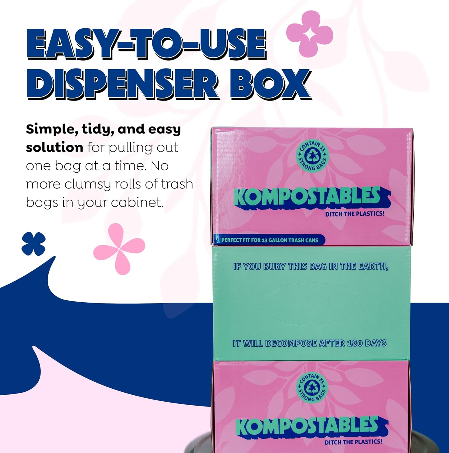 Puncture/Heat Resistant with Strong, Easy-Tie Handles: Engineered to handle tough kitchen waste without tearing or leaking, these handle tie, eco-friendly trash bags are built for dependable performance. Kompostables are thicker and more heat resistant than other large compost bags, which often melt when in contact with warm food.