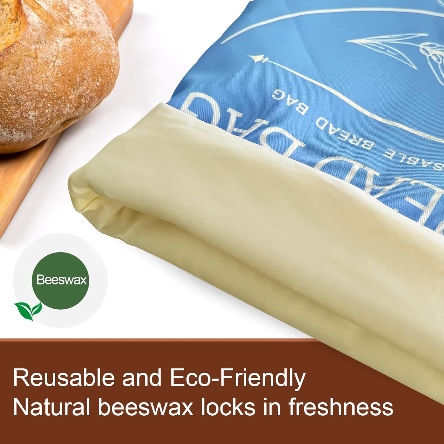 The natural beeswax lining forms a breathable barrier that retains moisture to prevent drying while releasing excess humidity, reducing sogginess and mold. For best results, store fully cooled bread after expelling air.