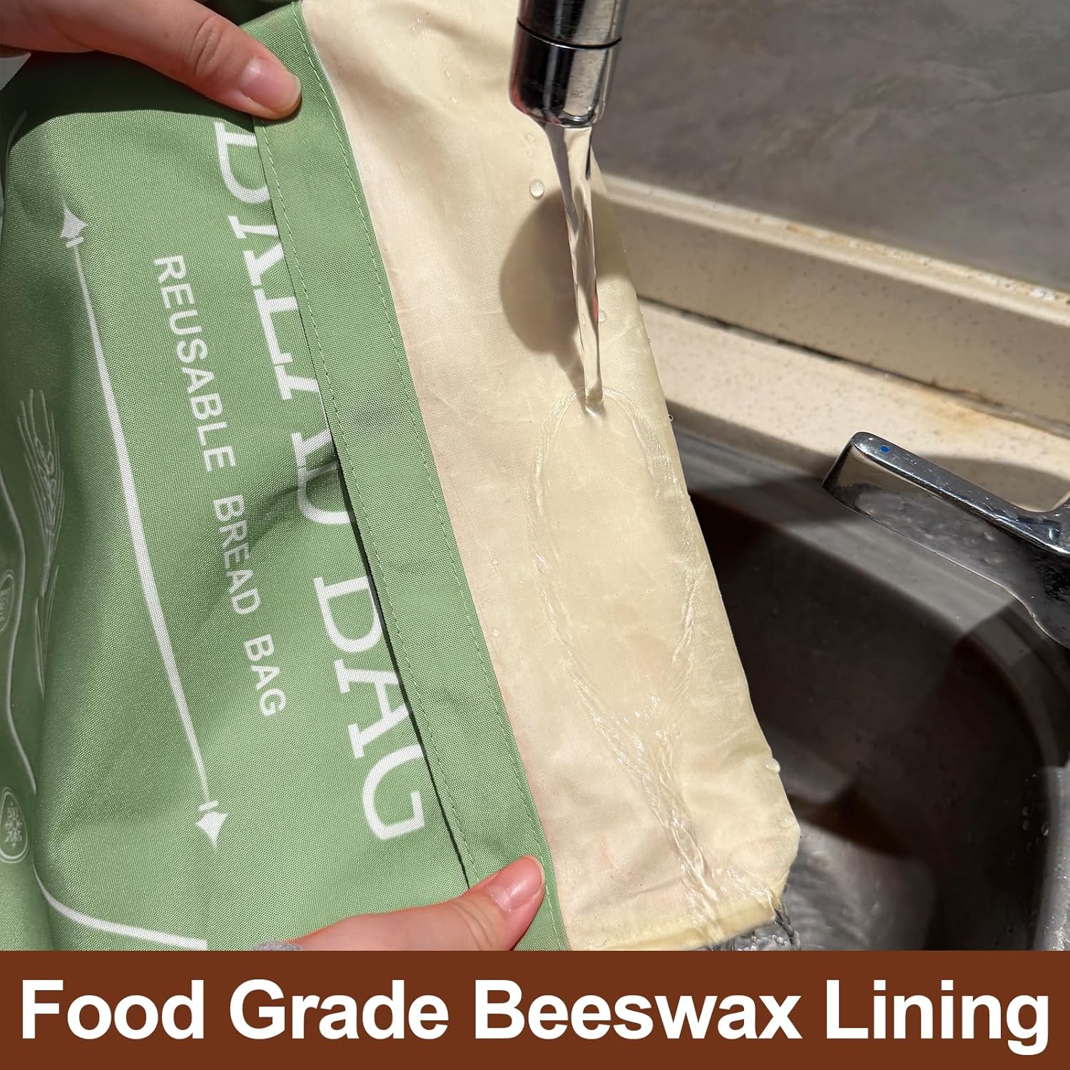 The natural beeswax lining forms a breathable barrier that retains moisture to prevent drying while releasing excess humidity, reducing sogginess and mold. For best results, store fully cooled bread after expelling air.