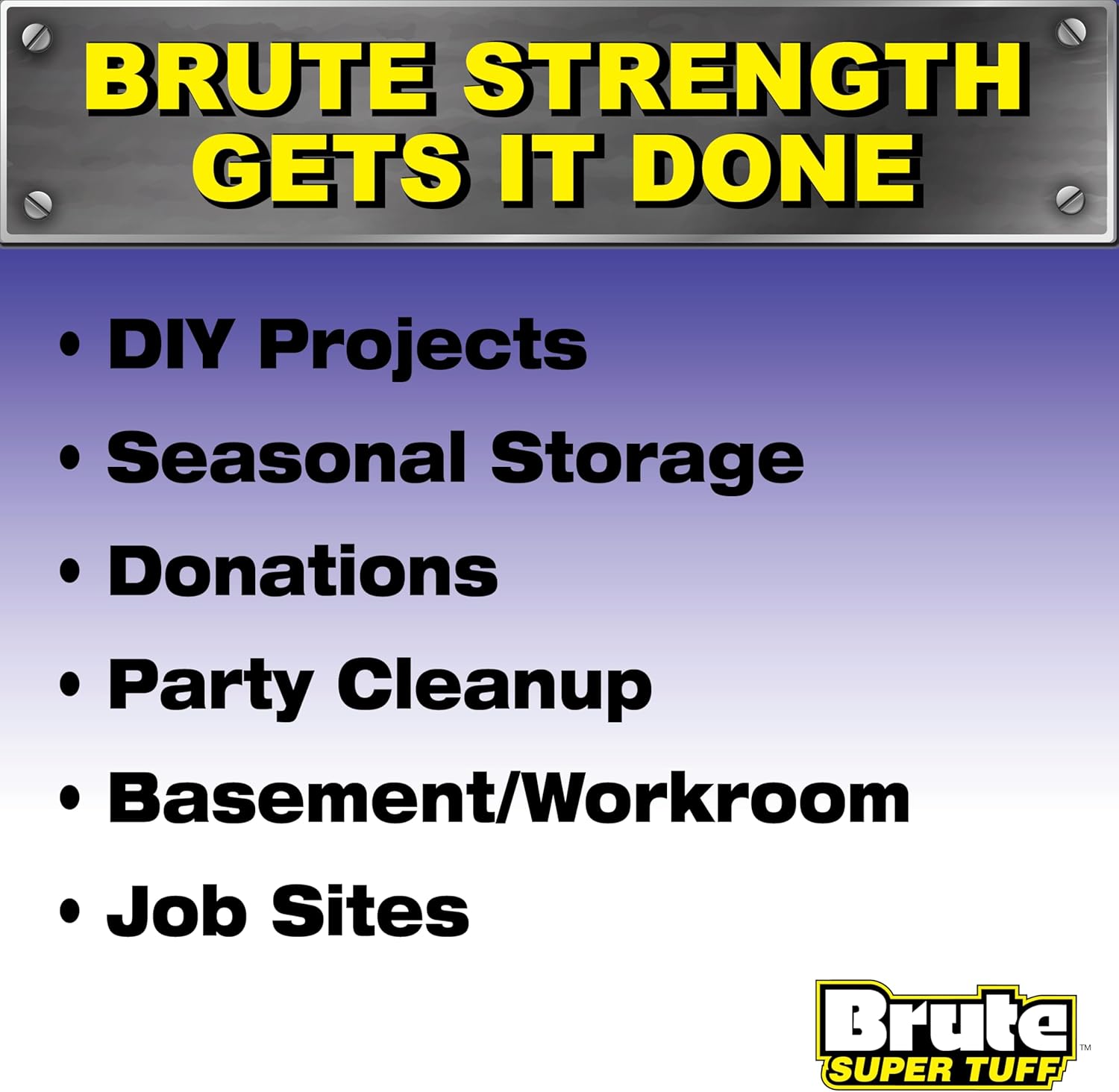 Multiple Uses Indoors & Out – Count on these extra-large trash bags for your toughest jobs at work or at home; Brute contractor bags are perfect for job sites, DIY projects, garage & basement cleanup, yardwork, bulky seasonal storage, donations, and more