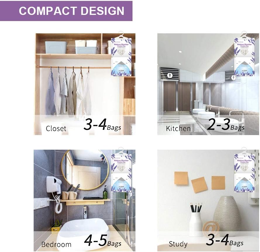 Moisture Absorber Bags and Boxs are perfect for closet,bedroom,kitchen,bathroom,basement,etc.Take away the musty confusion.