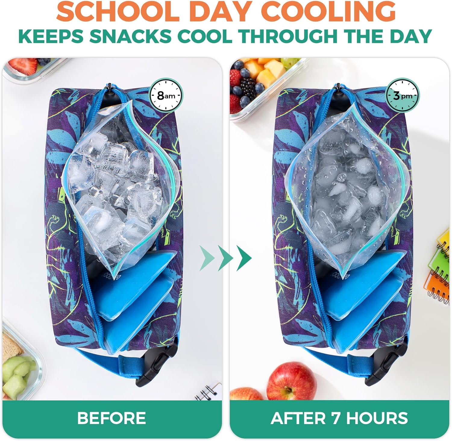 Freezable Snack Cooler Bag: Built-in detachable freezable gel packs provide 6–8 hours of cooling. Just freeze overnight and enjoy a reliable freezable snack bag for school days, trips, or outdoor activities
