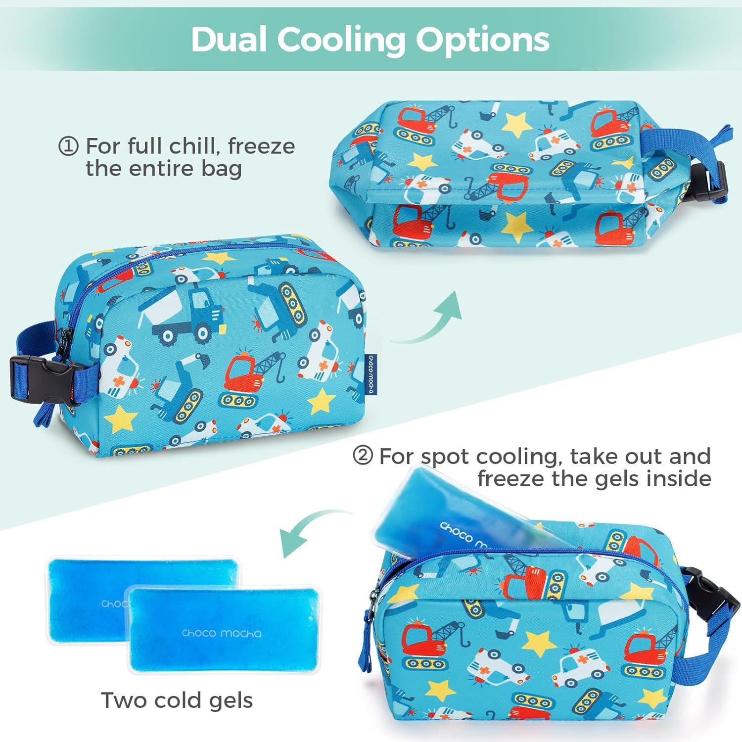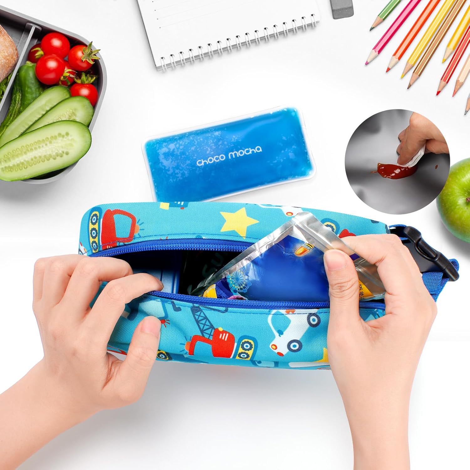 Choco Mocha Snack Bag for Kids Small Cooler Bags Insulated & Freezable Snack Bag For School Toddler Snacks Bag, Car Blue