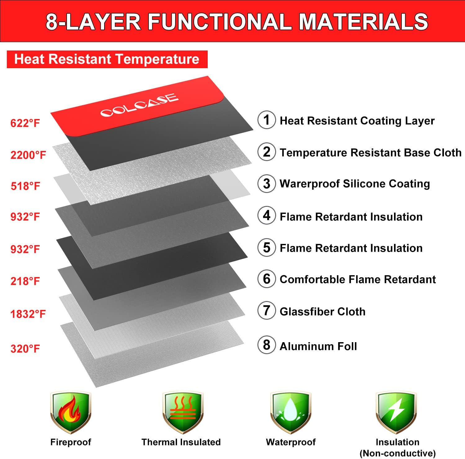 8 Layers Fireproof Material Protection – Colcase fireproof document bags are made of 8 layers high quality fire retardant materials silicone coated fiberglass fireproof safe bag which stands up against the fire and heat up to 5200℉.