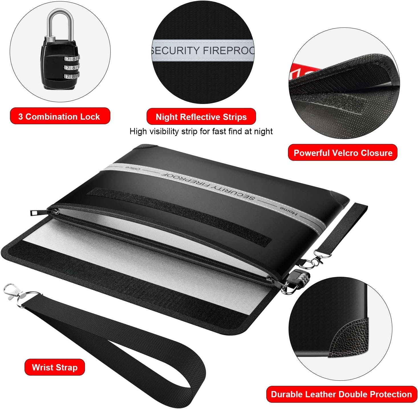 Perfect Fireproof Safe Bag – Combining a fireproof bag and fireproof safe box together is the best solution to offer your documents and valuable a complete protection in any fire accident. The fireproof bag is foldable and durable to put in a safe box, also it is featured with a hanging strap to easy carry on.