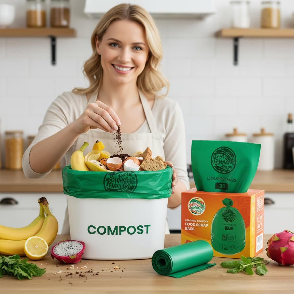 [STRONG DURABLE & CARRY WITH CONFIDENCE] The compostable Bags are made from plant starches and contain NO polyethylene. Bags are durable, nontoxic, easy to use and great for the environment.Our small trash bags 3 gallon is durable to prevent rips and tears. It allows a snug fold over the trash or compost bin rim to prevent slipping and ensure the compostable bags stay in place and the triple ply prevents leaks and allows you to carry them with confidence. The compost bin bags makes your busy kitchen composting jobs easy.