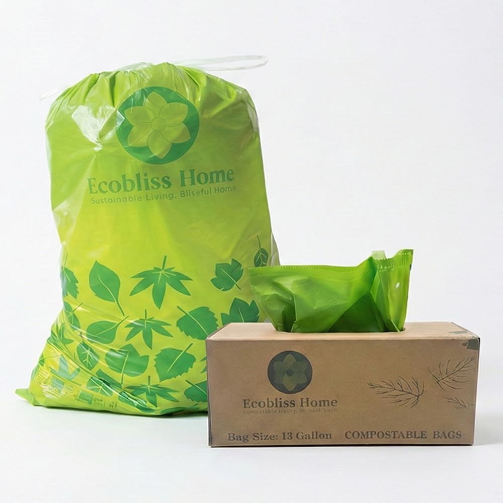 Compostable 13-Gallon Trash Bags with Drawstring – Extra-Strength, TUV-Certified, BPA-Free Trash Liners – 25 Count