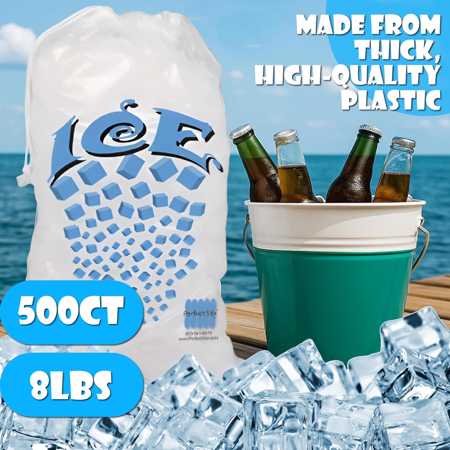 Convenient Drawstring Closure: Each bag includes a built-in drawstring for quick and easy sealing — keeps ice securely contained while preventing spills and contamination.