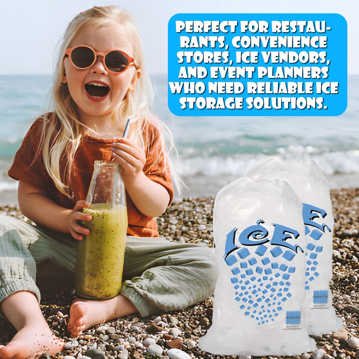 Bulk Pack of 100 Bags: Cost-effective value pack — perfect for restaurants, convenience stores, ice vendors, and event planners who need reliable ice storage solutions.