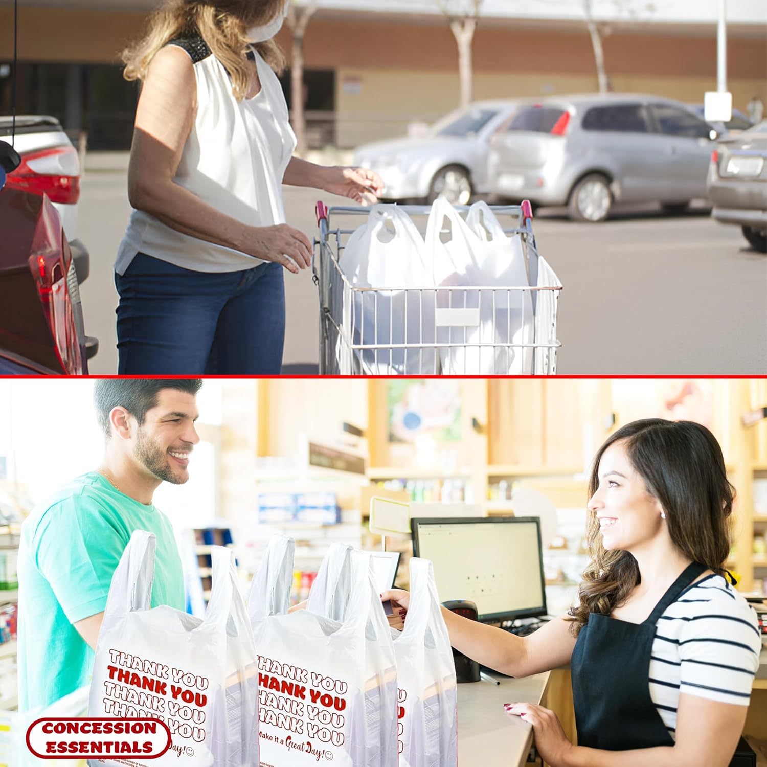 Concession Essentials Disposable & Reusable Thank You T-Shirt Bags- Pack of 50ct